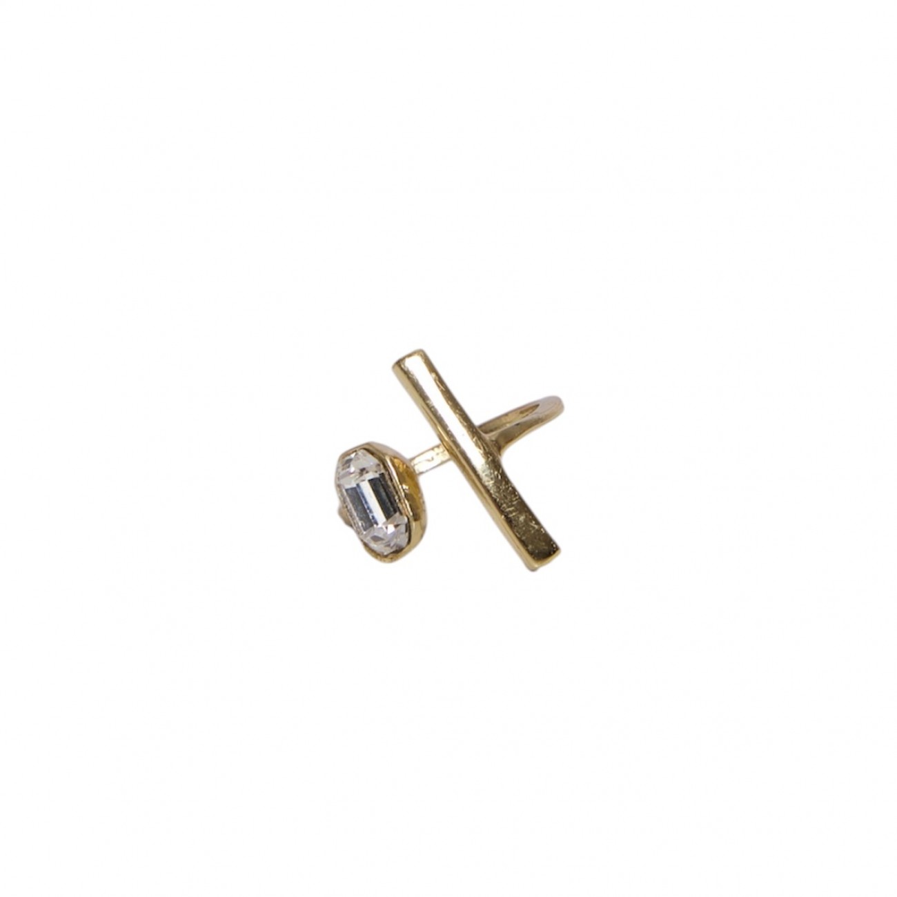 Anello in ottone motivo asimmetrico con cristallo sintetico.