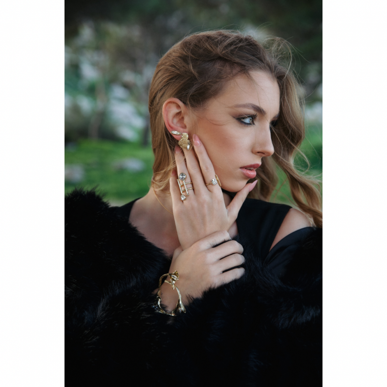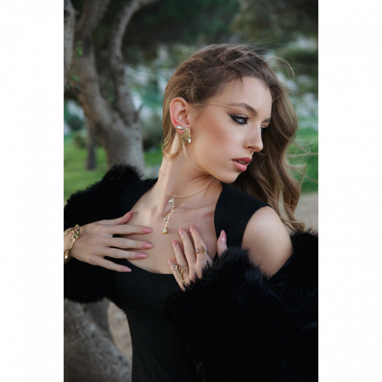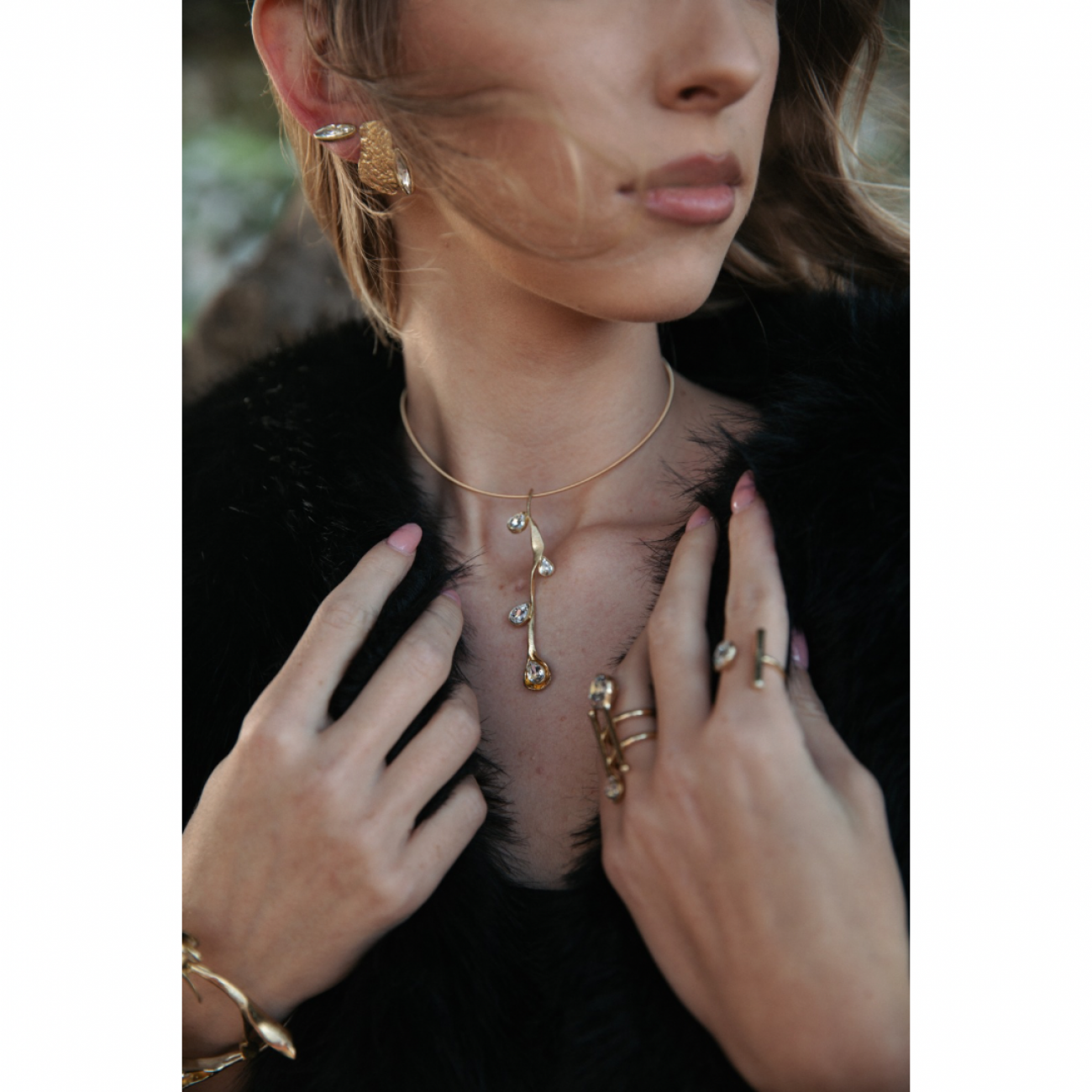 dettagli prodottoOrecchini pioggia di luce black and gold