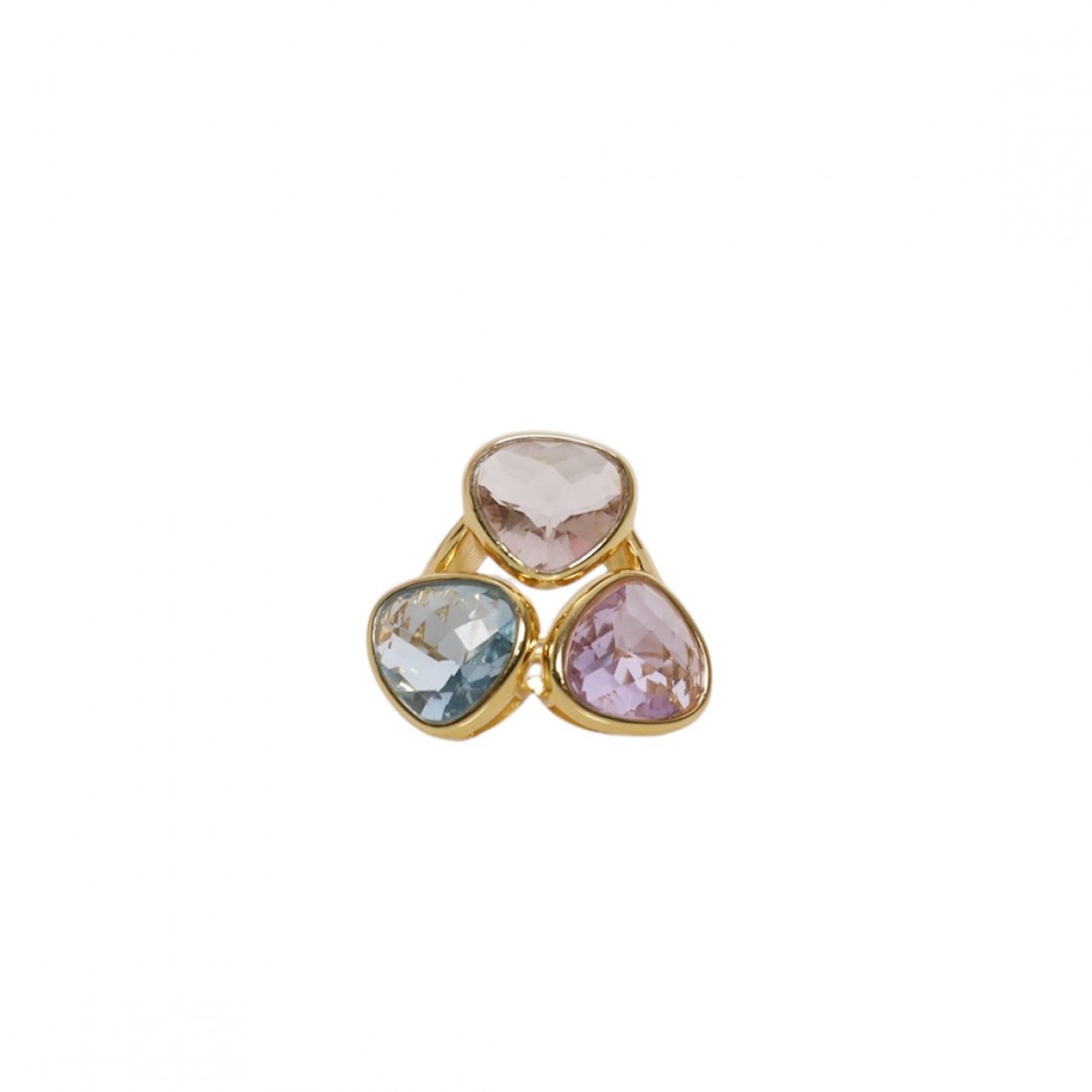 Anello in argento placcato oro con zirconi multicolor.