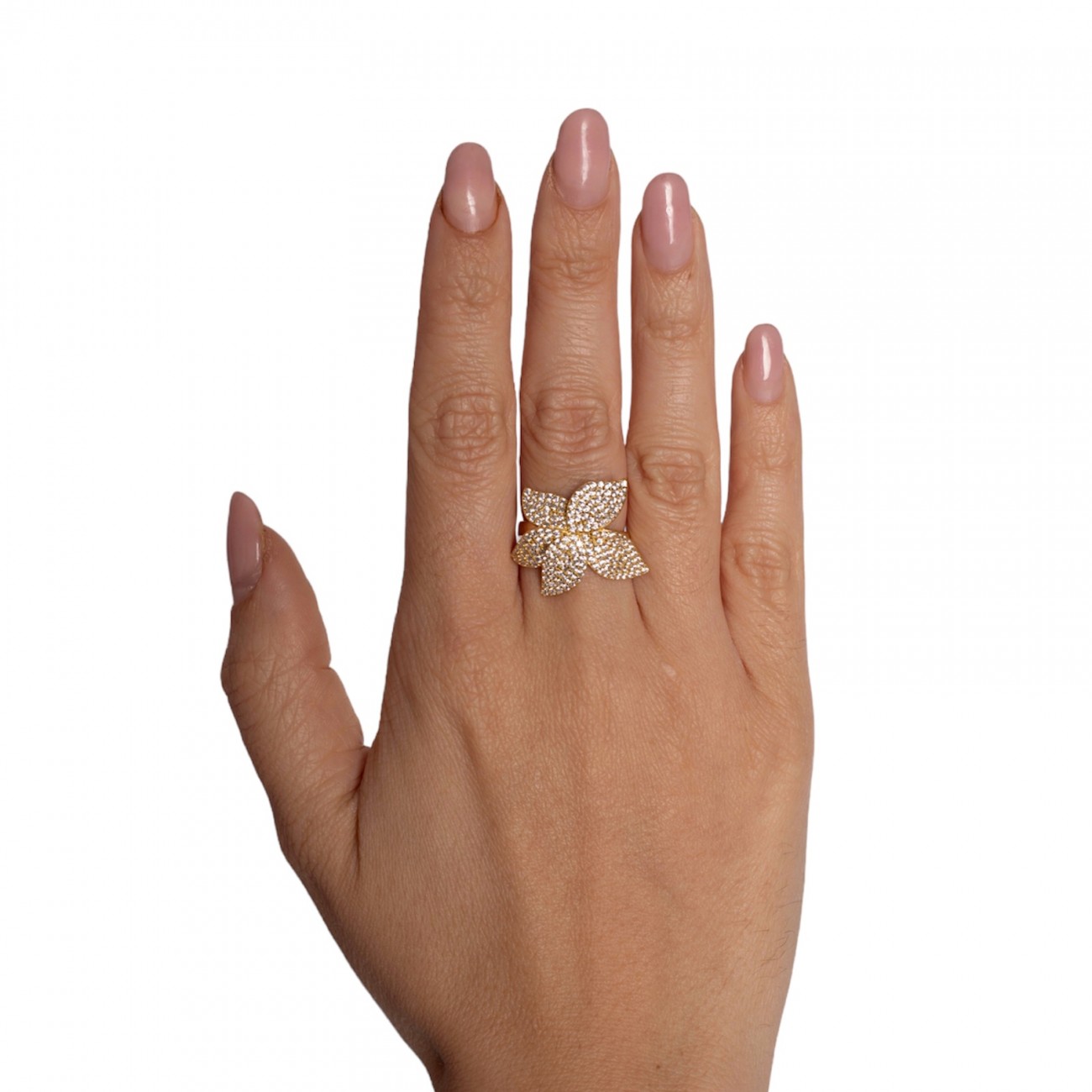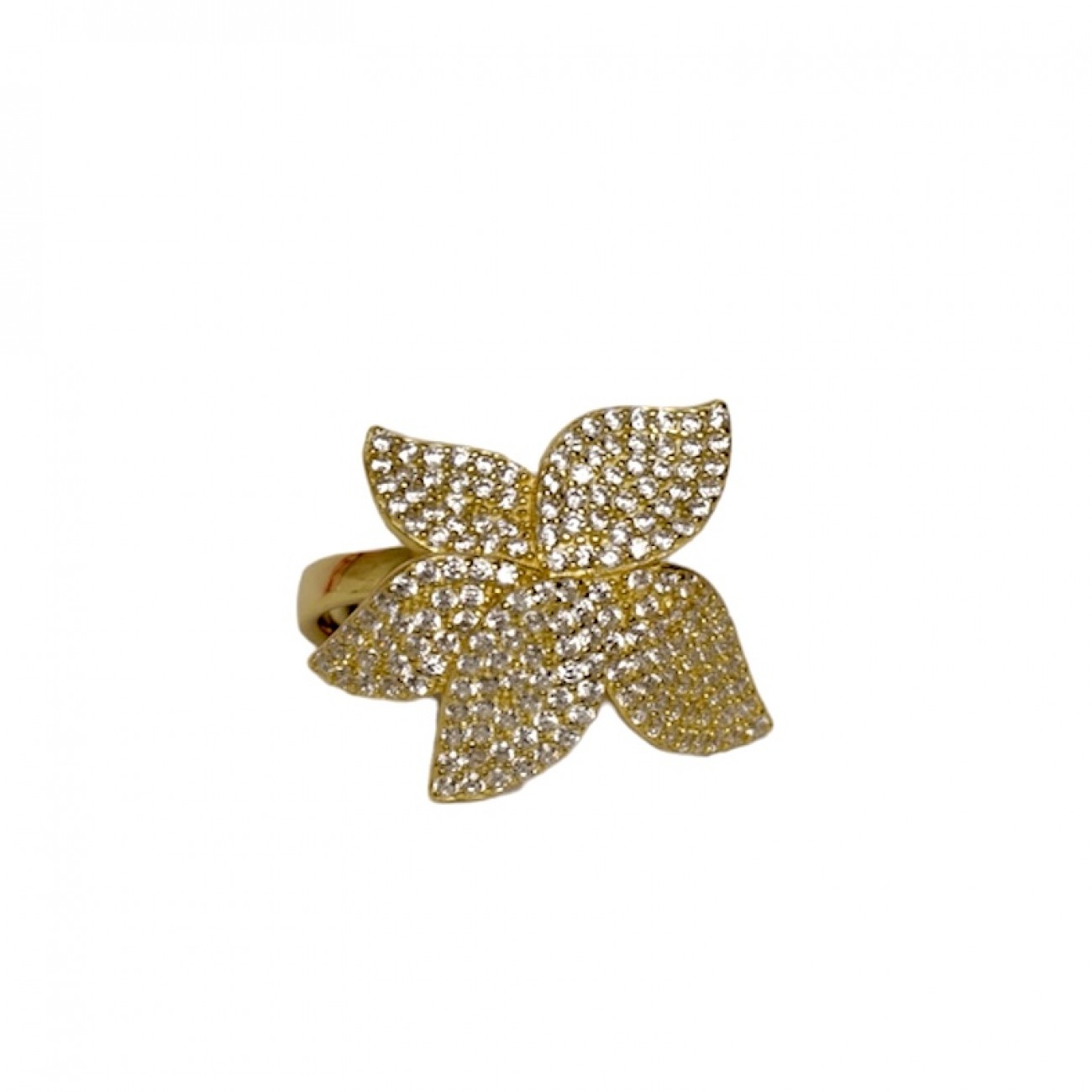 Anello in argento dorato a forma di fiore con zirconi bianchi