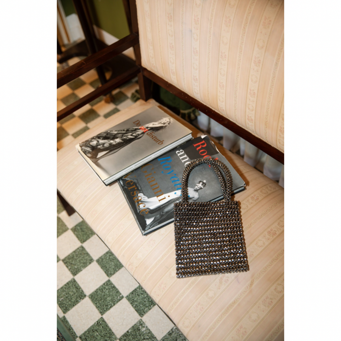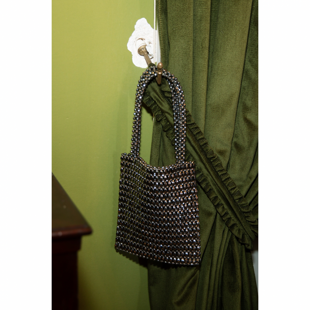 Borsa a mano a sacchettino con perline intrecciate.