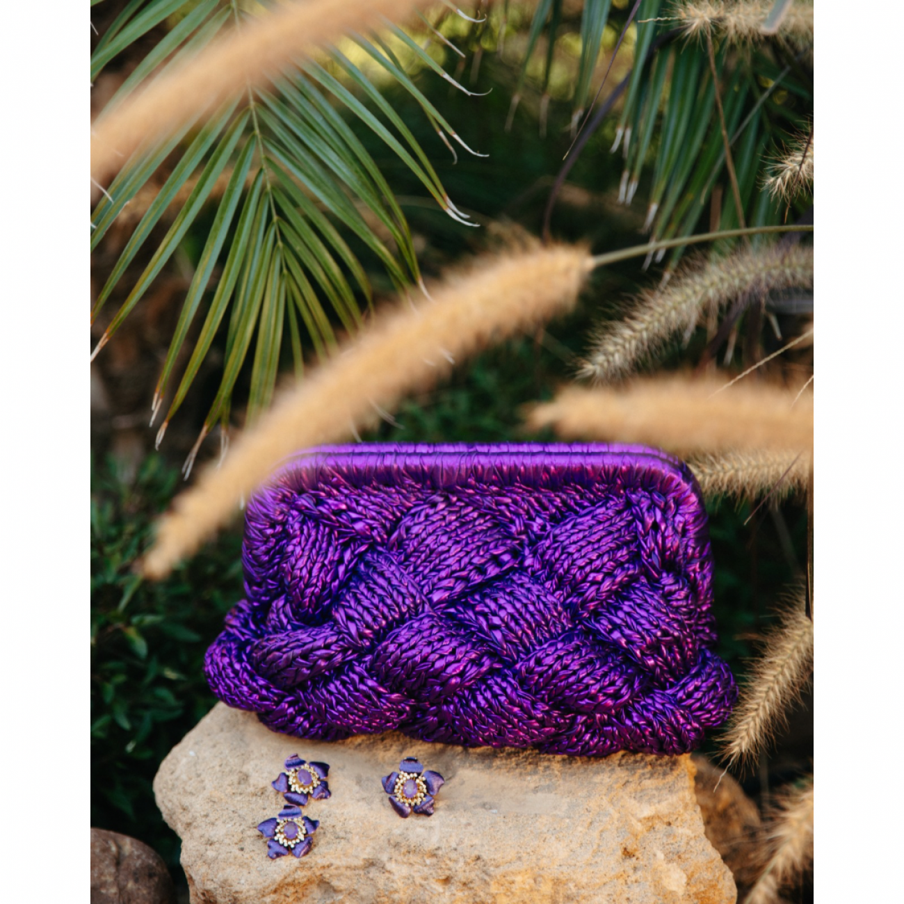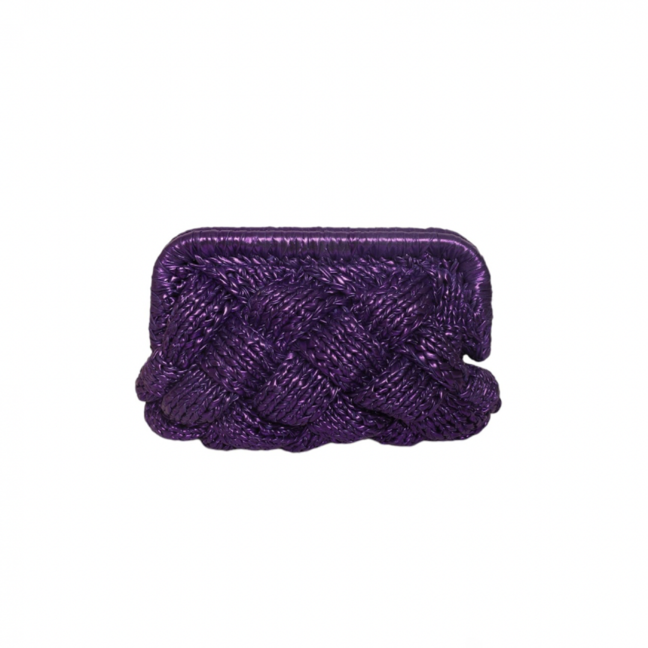 Borsa da sera realizzata a mano in rafia metallizzata.