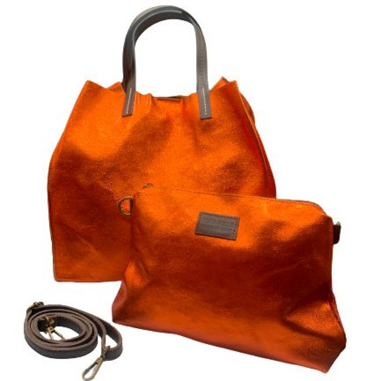 Borsa shopper in pelle, semplice e leggera, perfetta per tutte le occasioni. Fornita di beauty con tracolla in pelle.