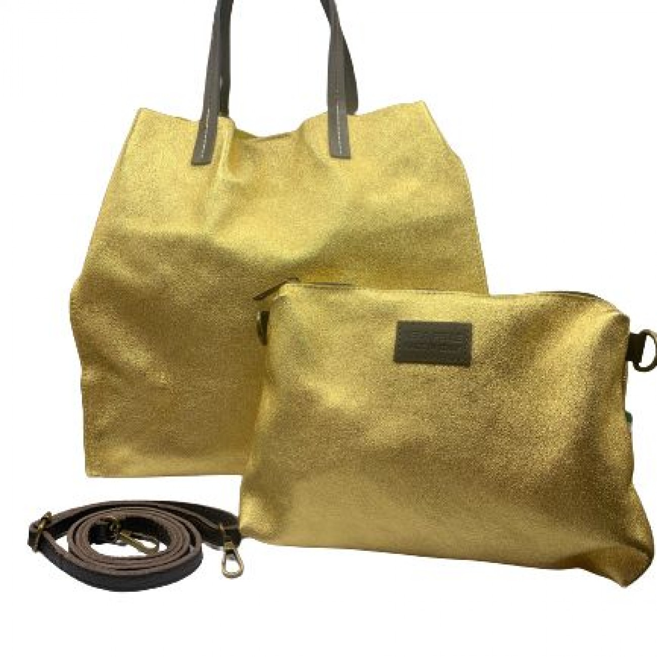 Borsa shopper in pelle, semplice e leggera, perfetta per tutte le occasioni. Fornita di beauty con tracolla in pelle.