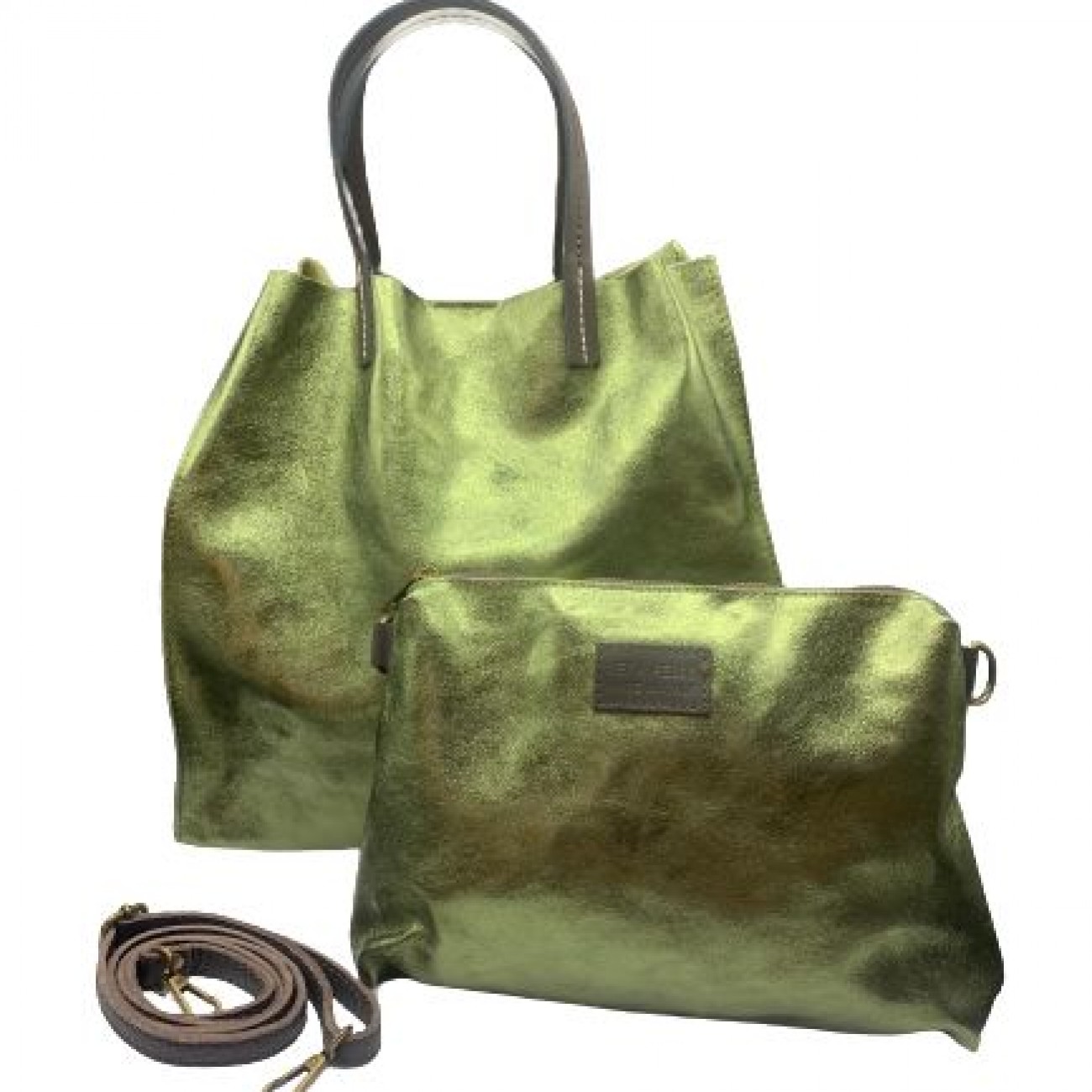 Borsa shopper in pelle, semplice e leggera, perfetta per tutte le occasioni. Fornita di beauty con tracolla in pelle.