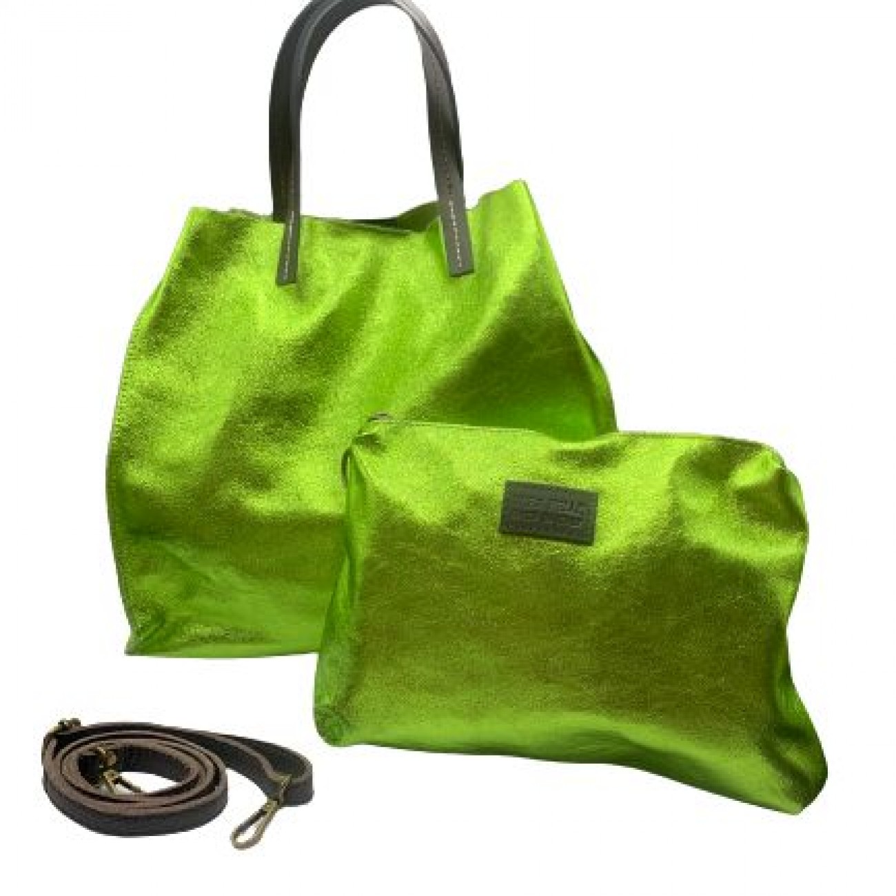 Verde Borsa in pelle glit verde acido