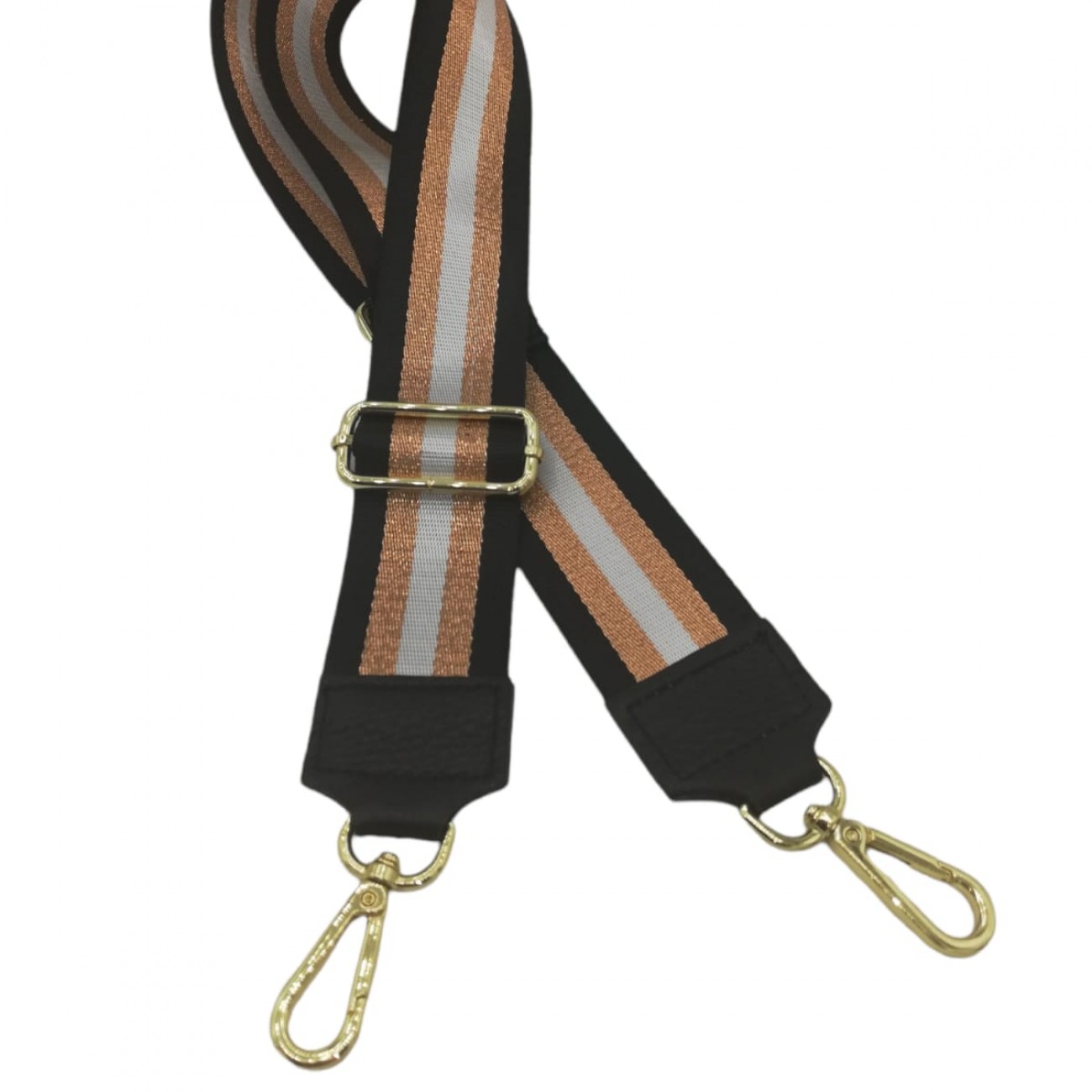 Cintura per borsa con moschettone dorato, tracolla regolabile.