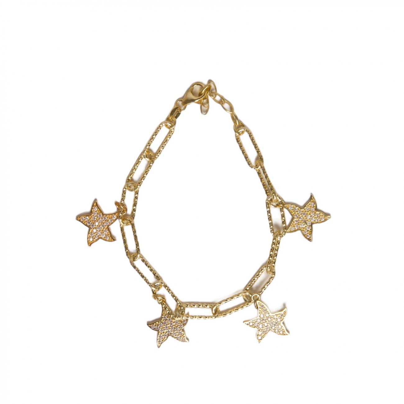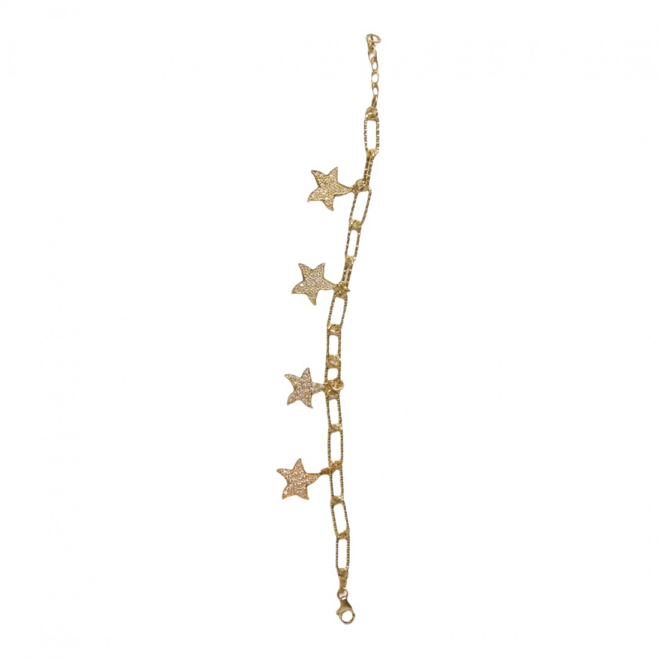 Bracciale in argento con pendenti a forma di stella con strass.