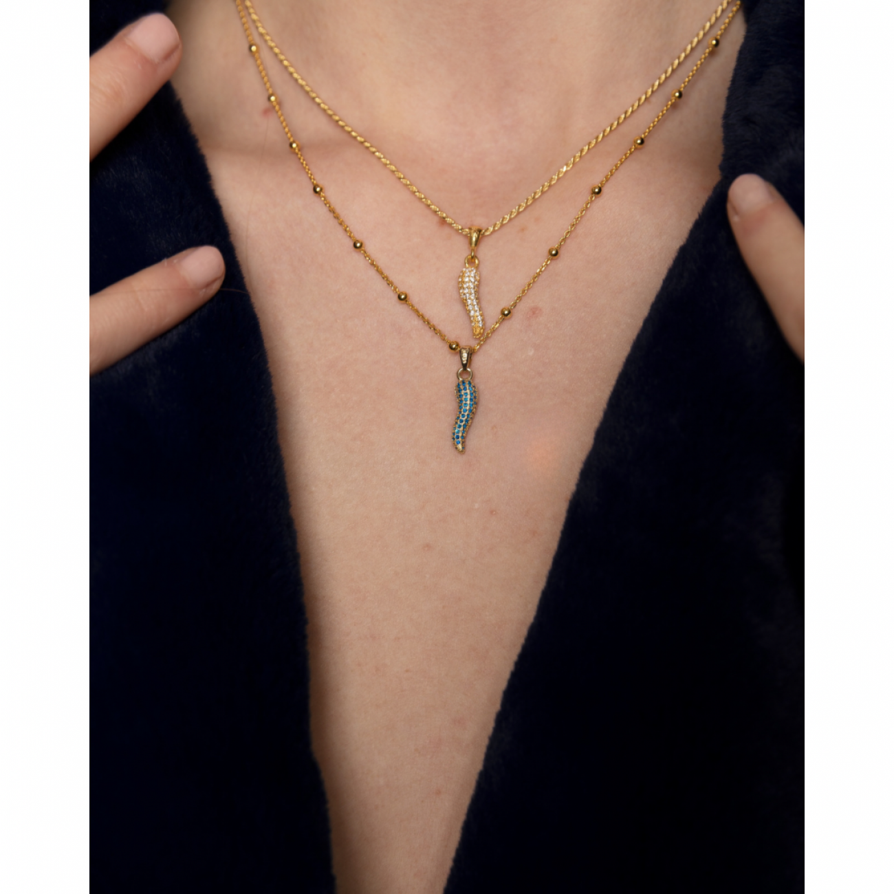 dettagli prodottoCollana lucky horn blu