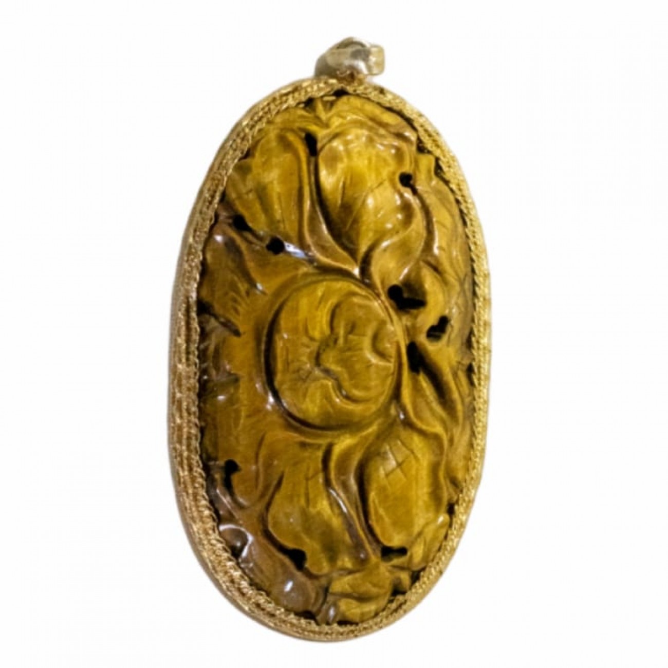 ciondolo in occhio di tigre intarsiata e filigrana in zama