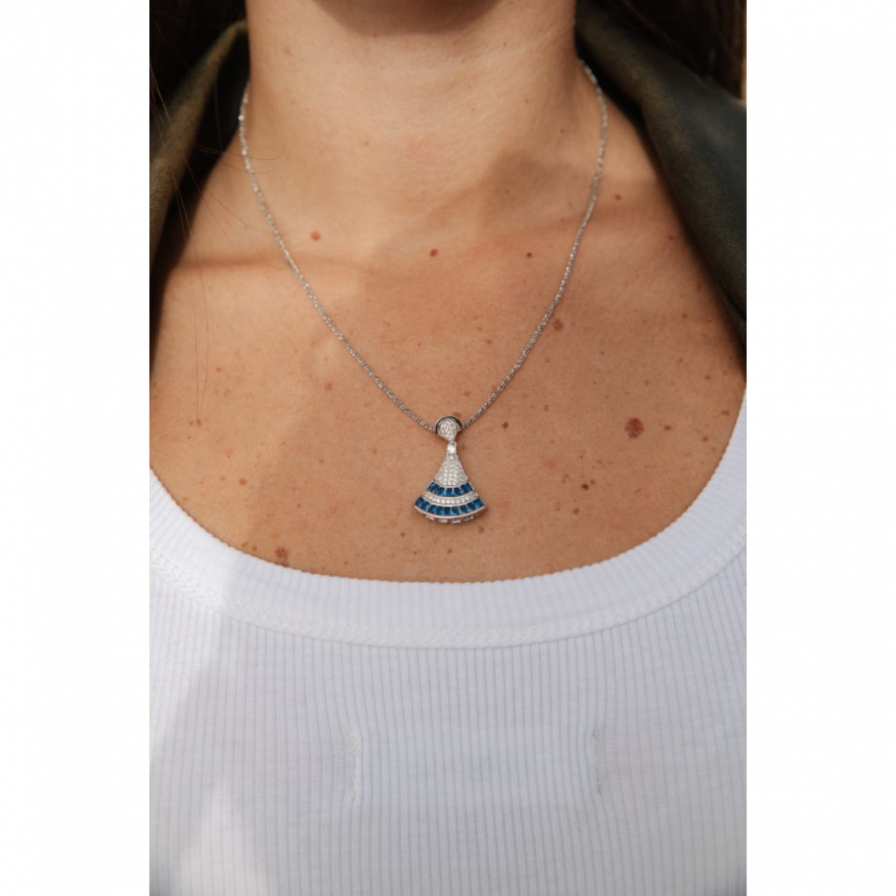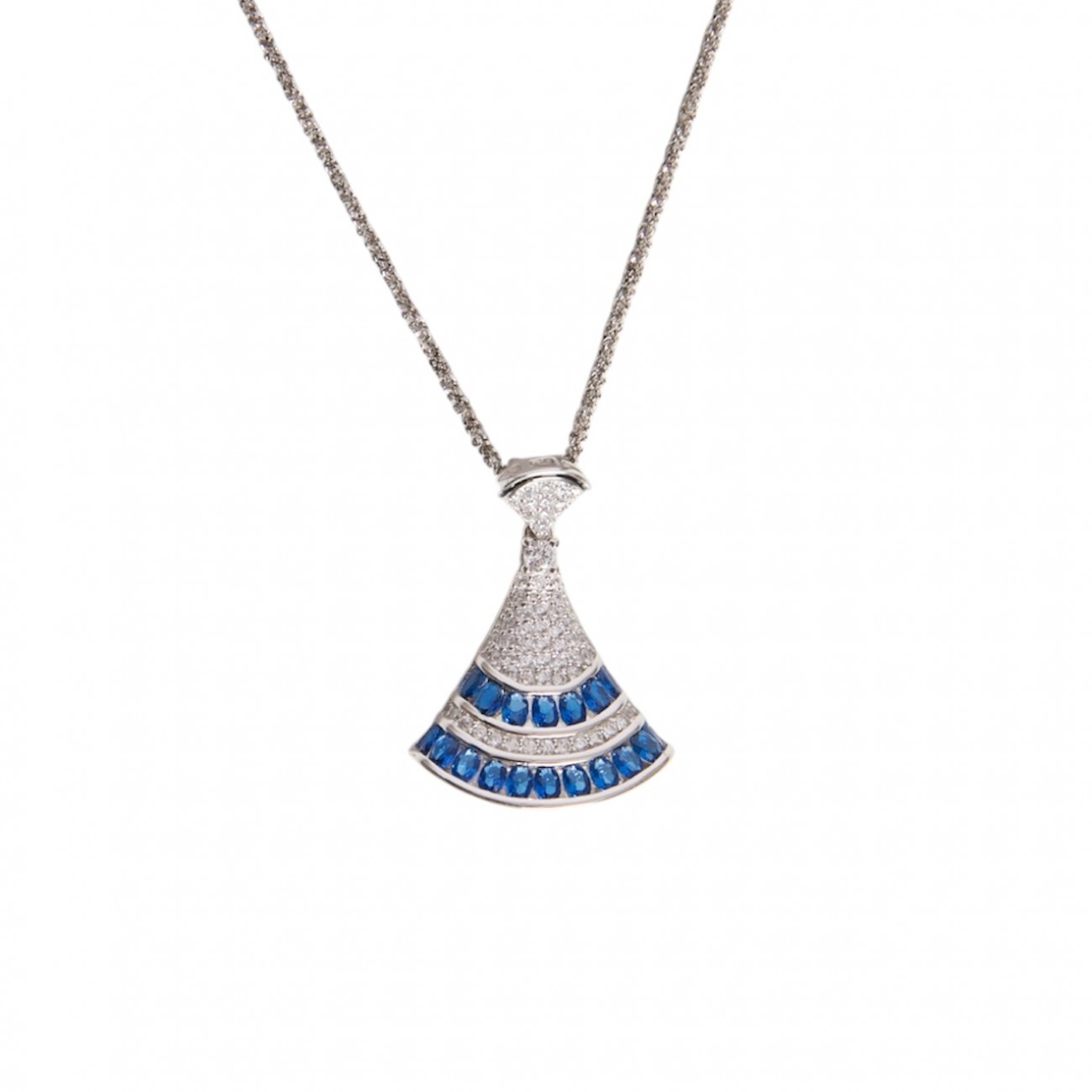 Collana in argento con pendente a forma di imbuto e zirconi.