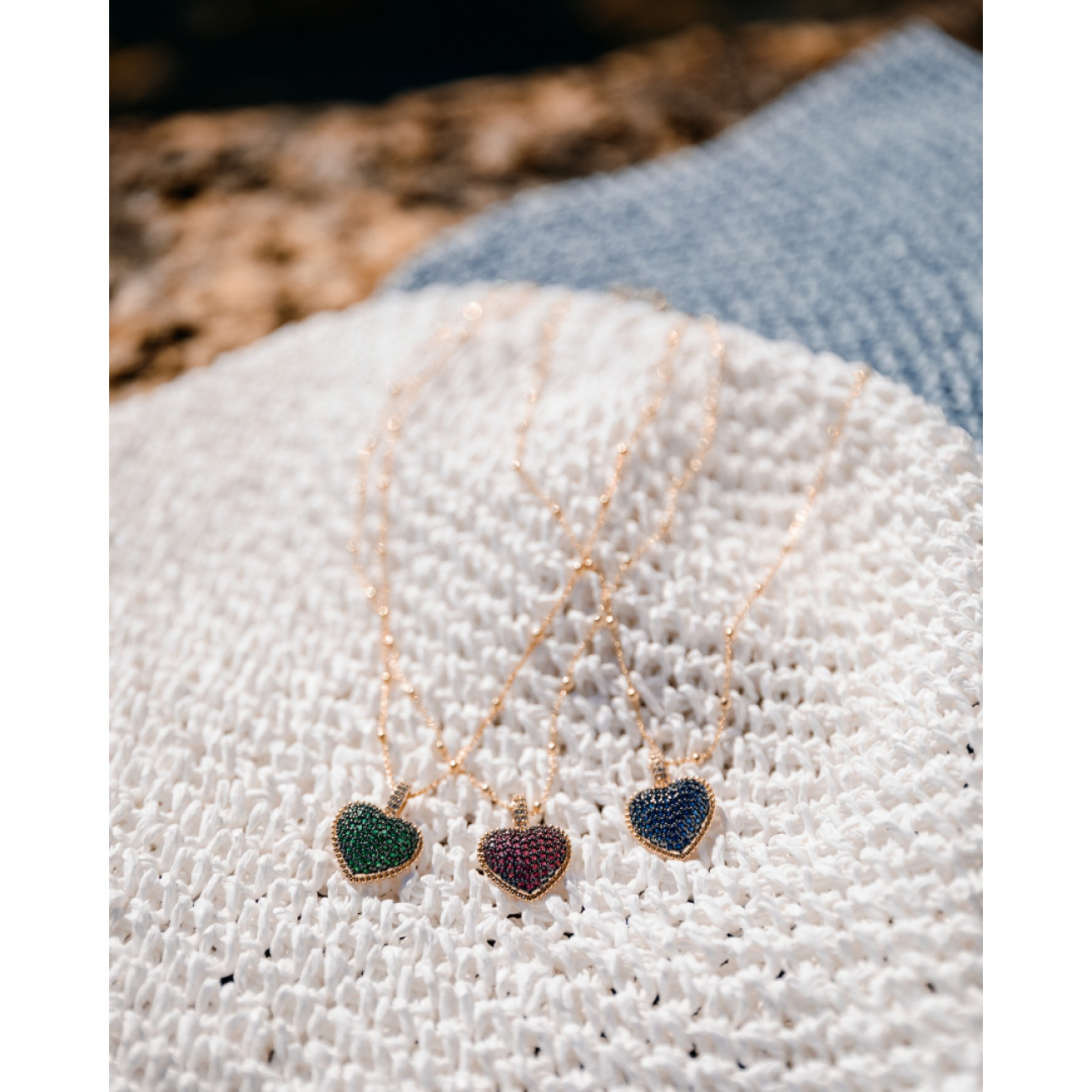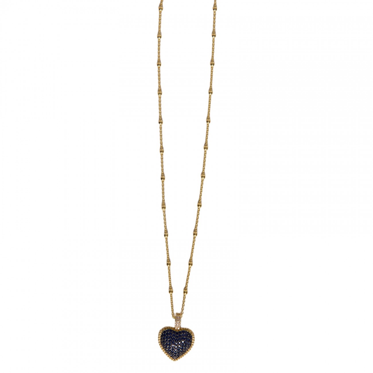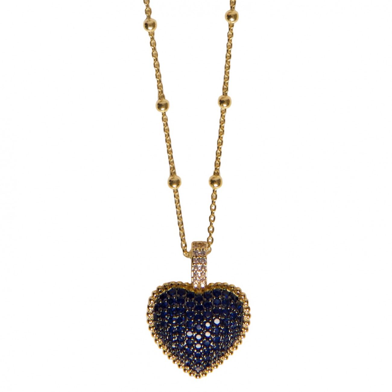 Collana in argento dorato con pendente a forma di cuore e strass blu