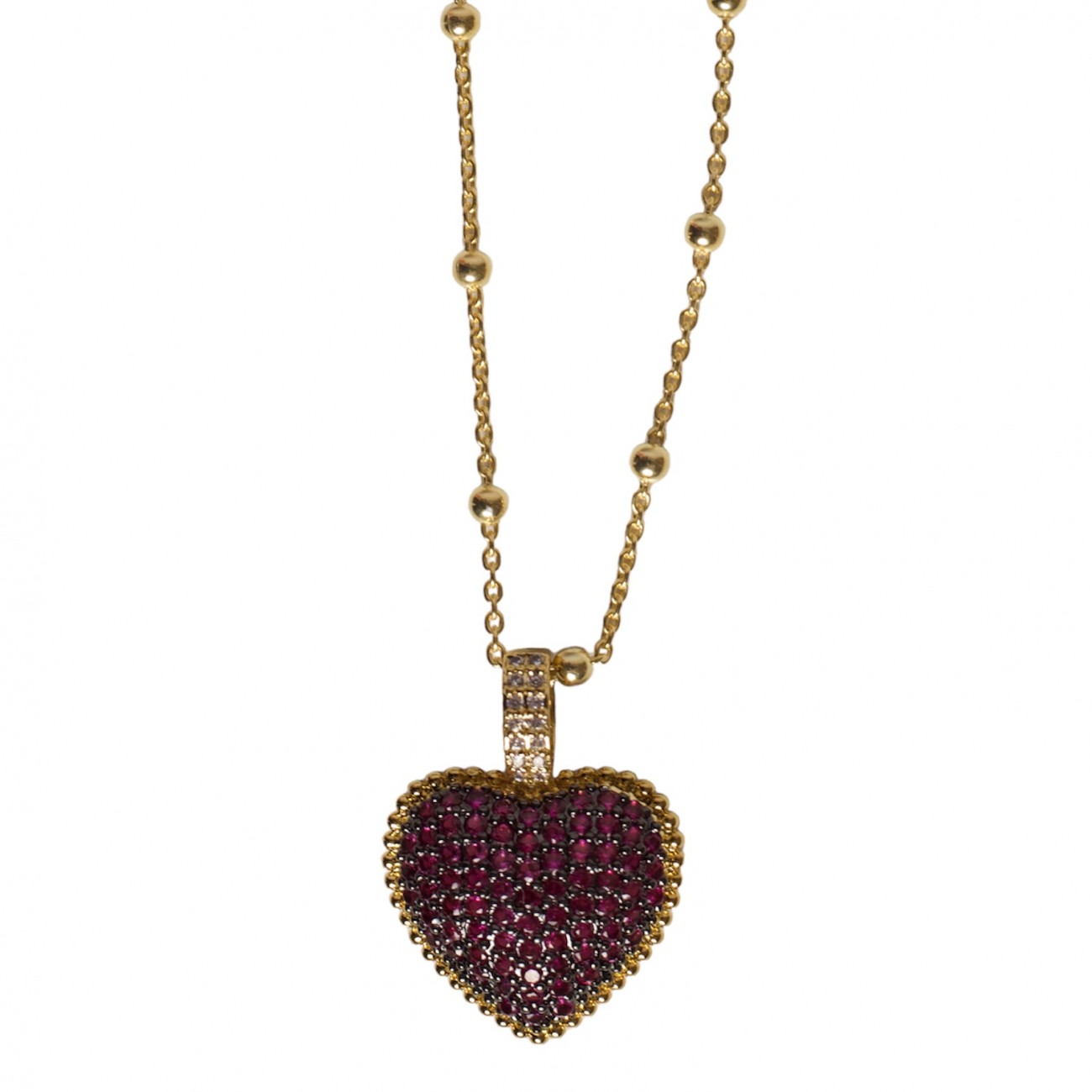 Collana in argento dorato con pendente a forma di cuore e strass ciclamino