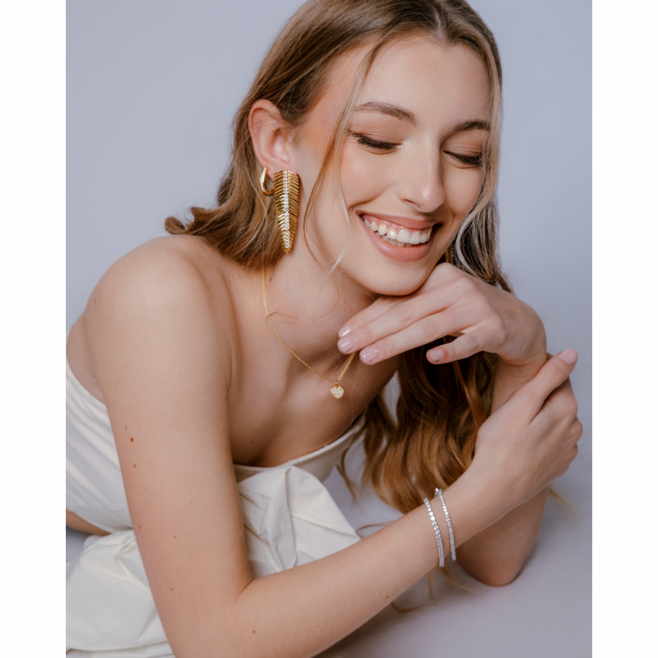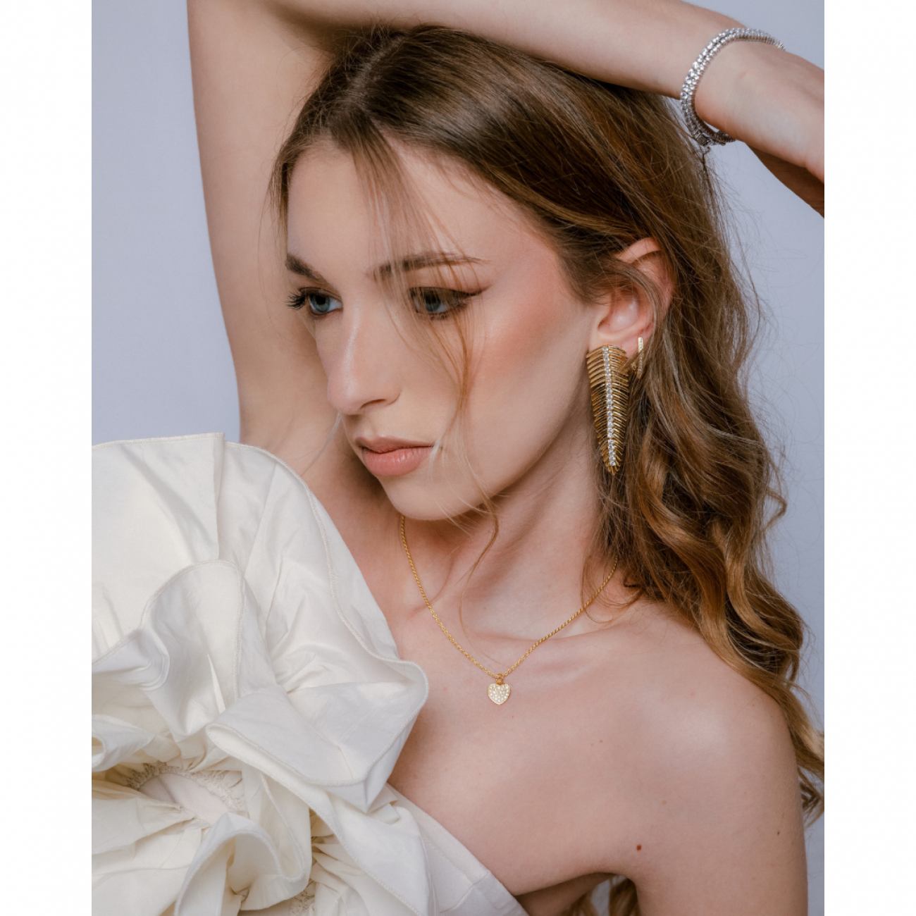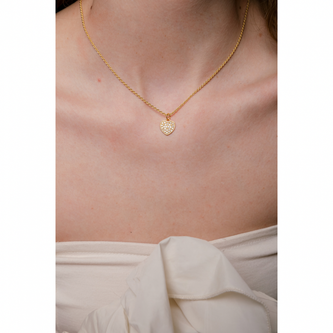 Collana in argento dorato con ciondolo a forma di cuore con strass neutro