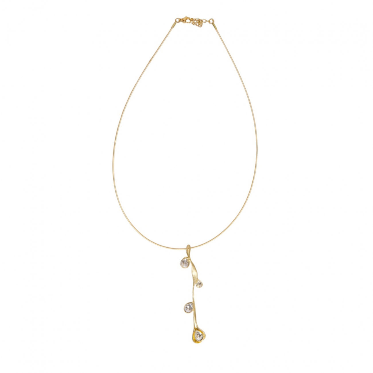 Collana in ottone con pendente con cristalli sintetici asimmetrici.