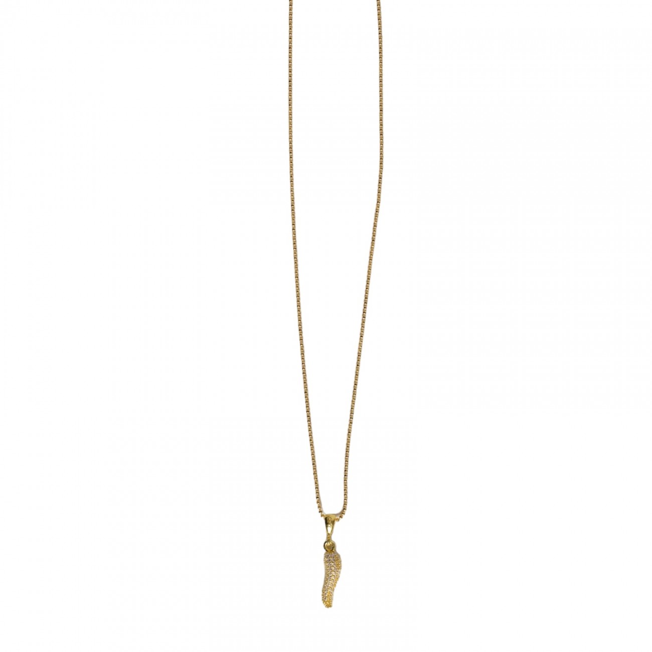 Collana a pallini in argento dorato con ciondolo a forma di corno con strass color neutro