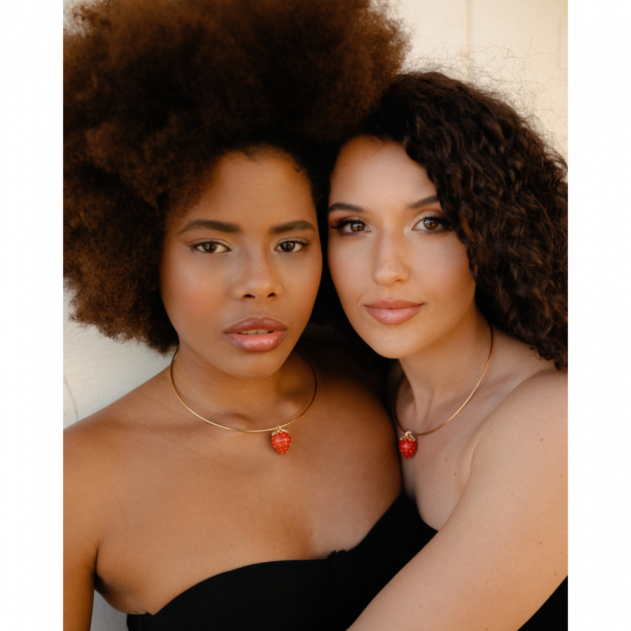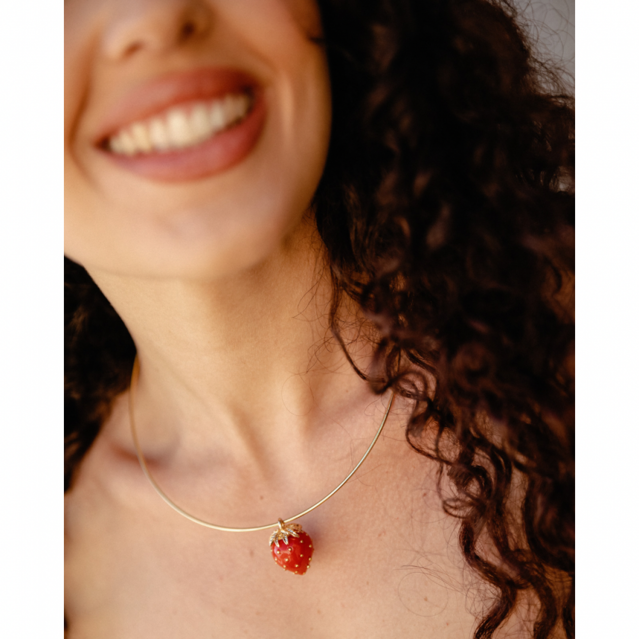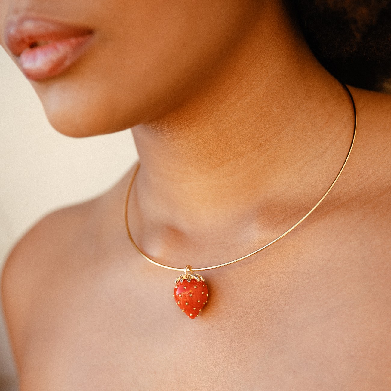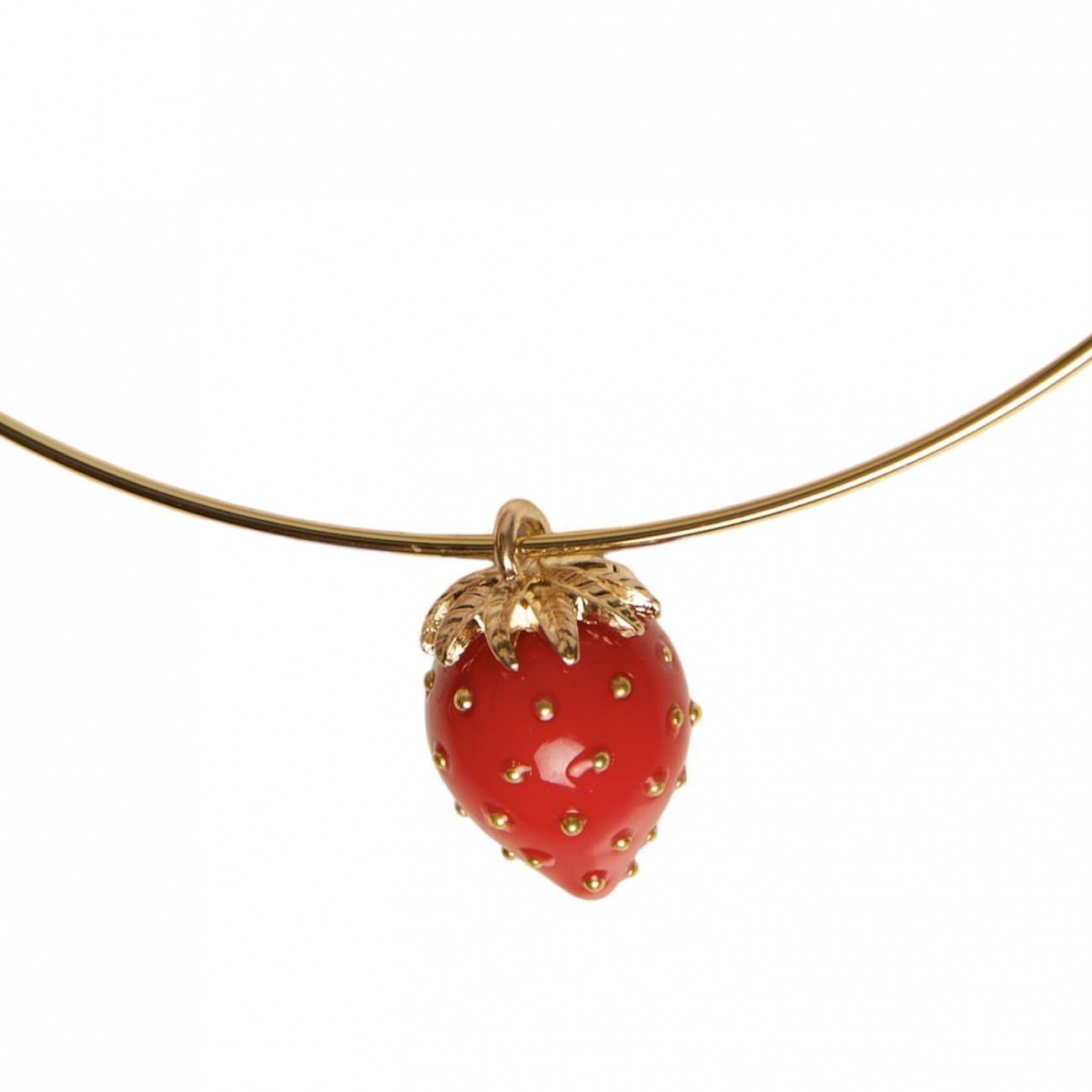 Collana rigida in acciaio con pendente a forma di fragola smaltata
