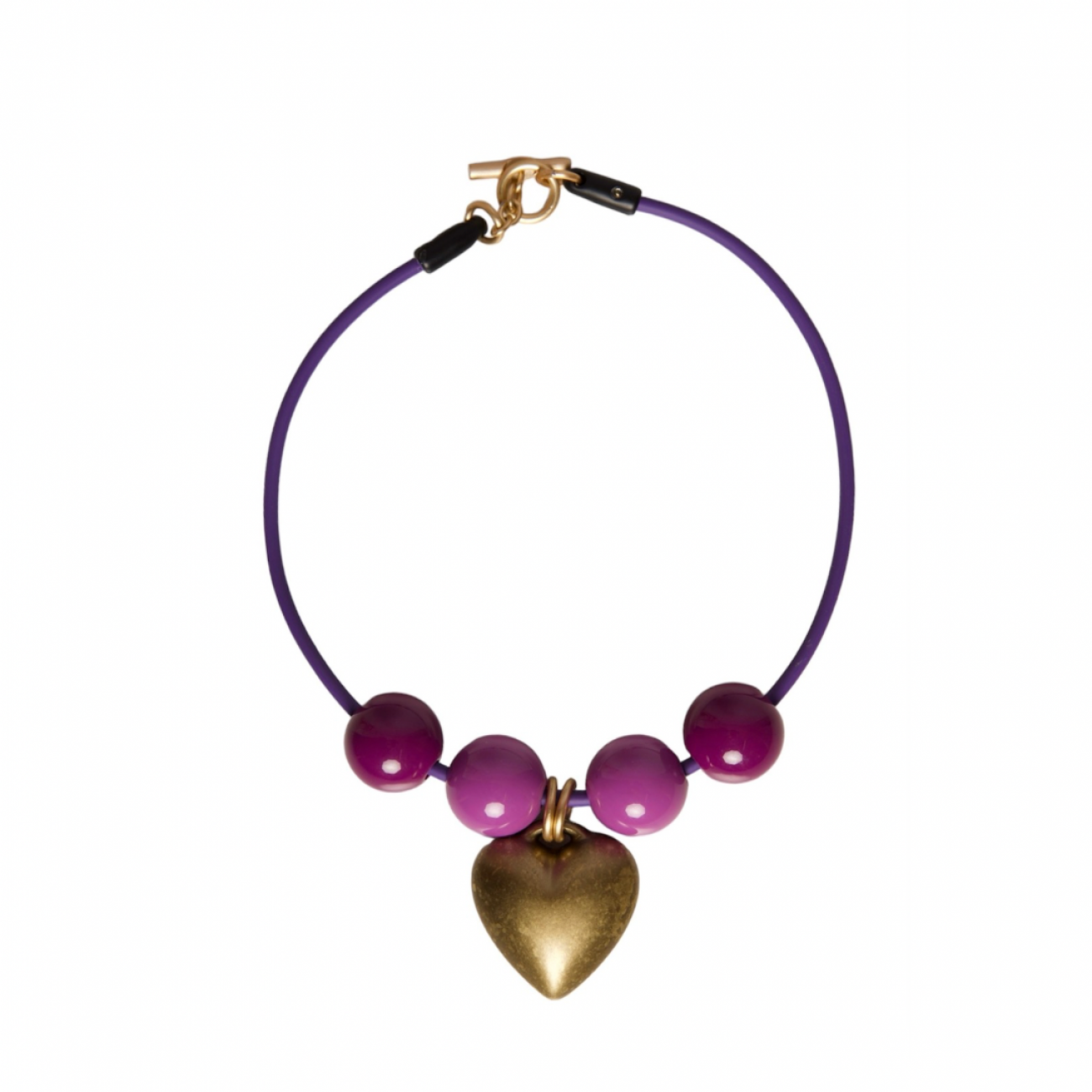 Collana in pvc con sfere in resina e ciondolo pendente a forma di cuore dorato