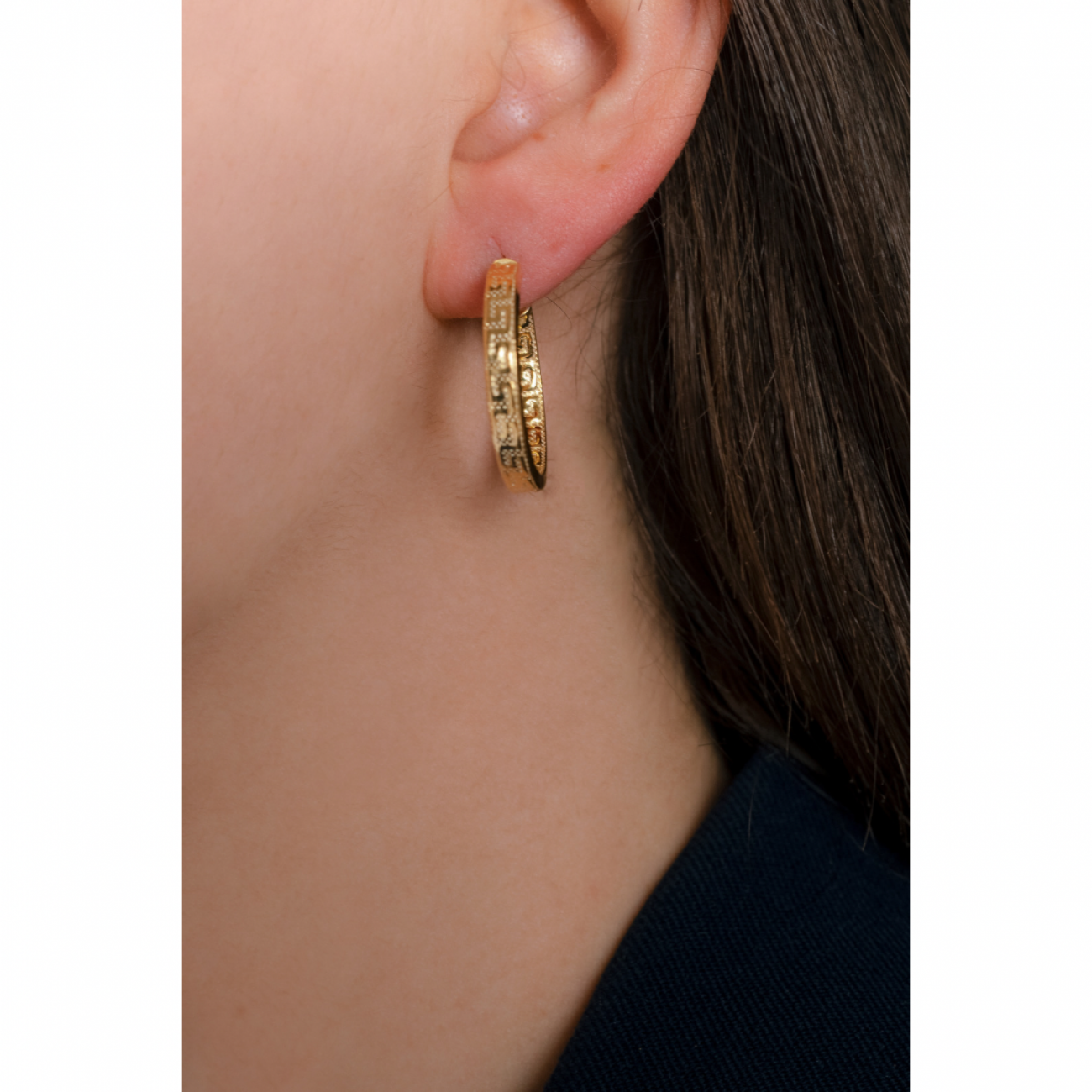 Orecchini in argento dorato a forma di cerchio con motivo greco