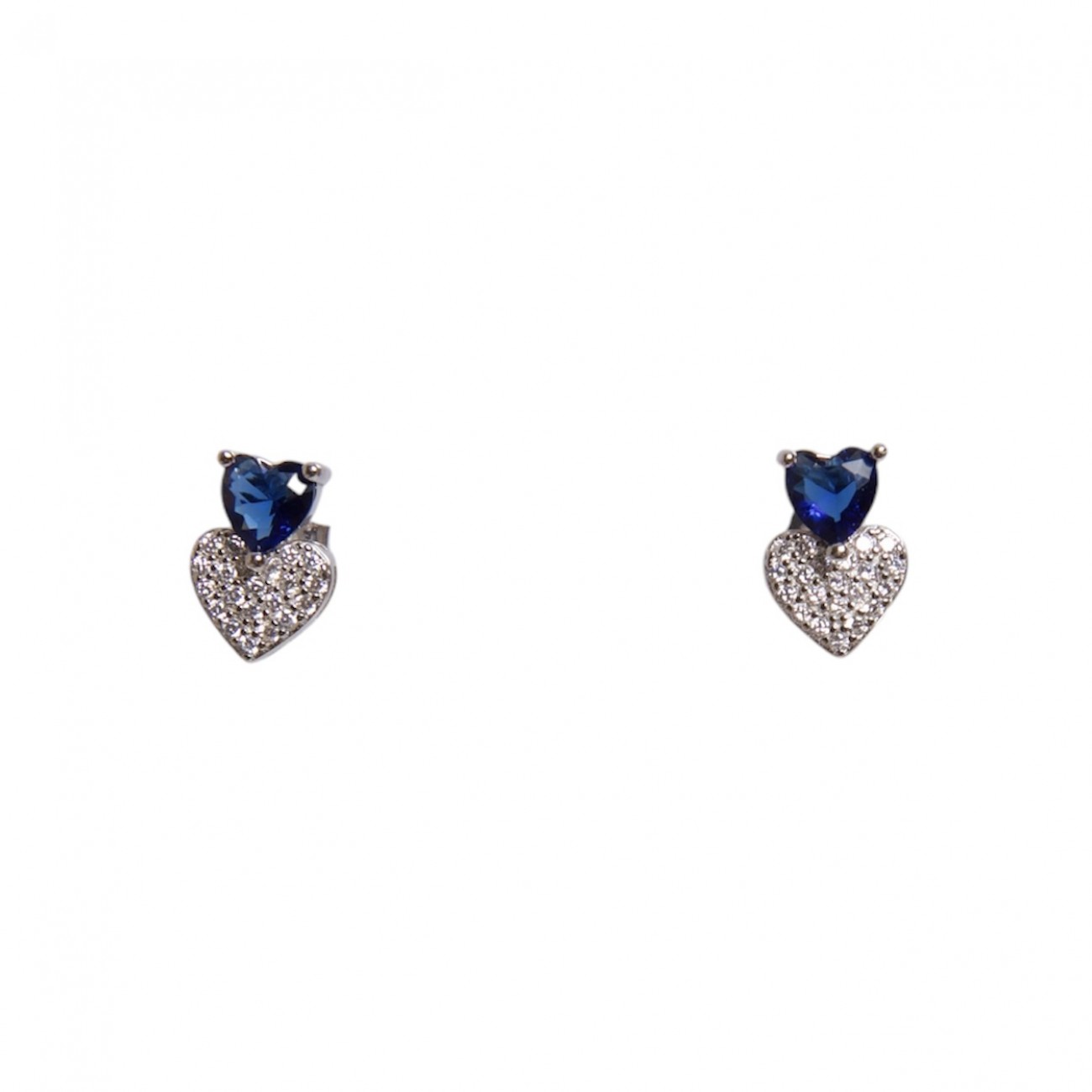 Orecchini in argento con cuori di zirconi sovrapposti.