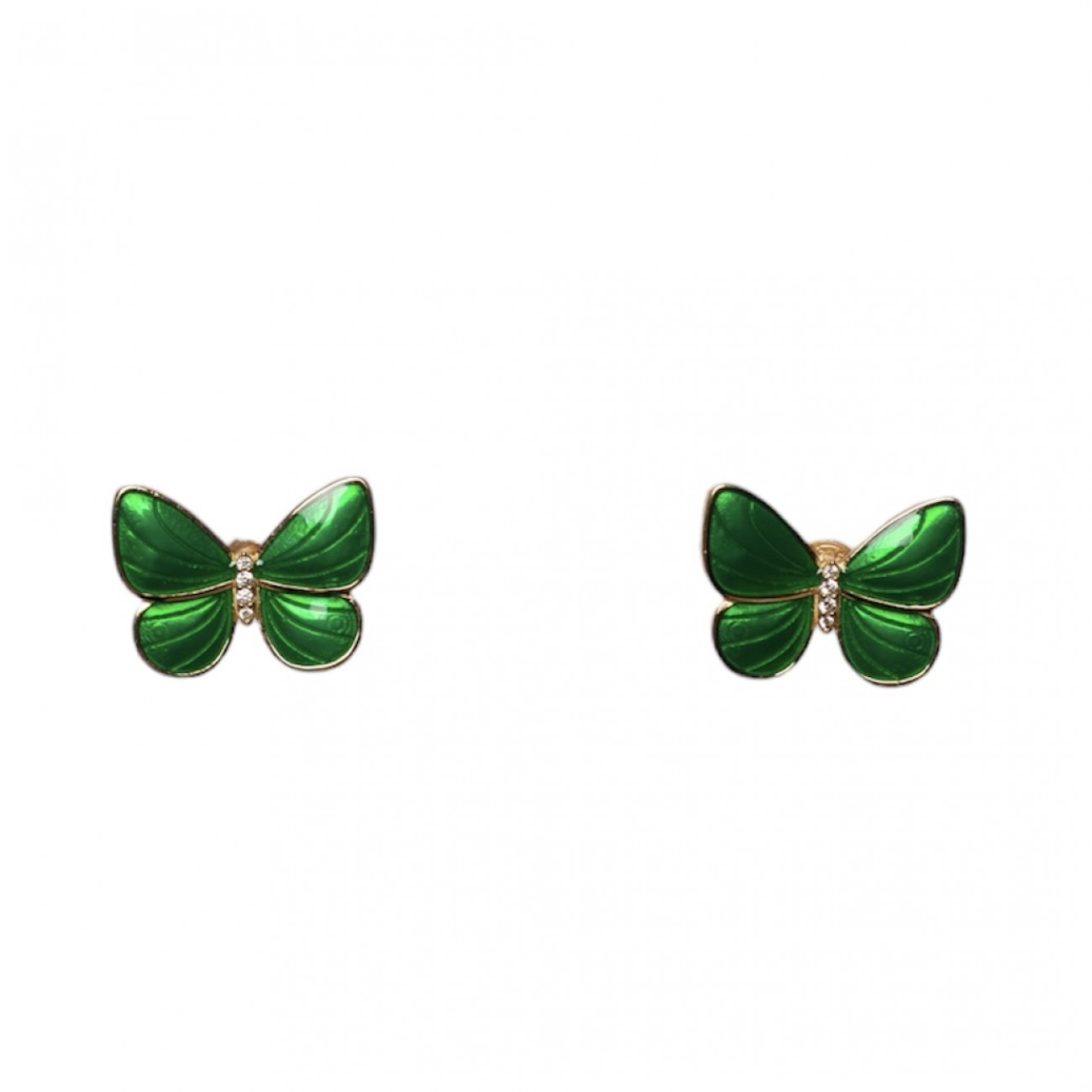 Orecchini in argento dorato a forma di farfalla smaltata verde e strass centrali