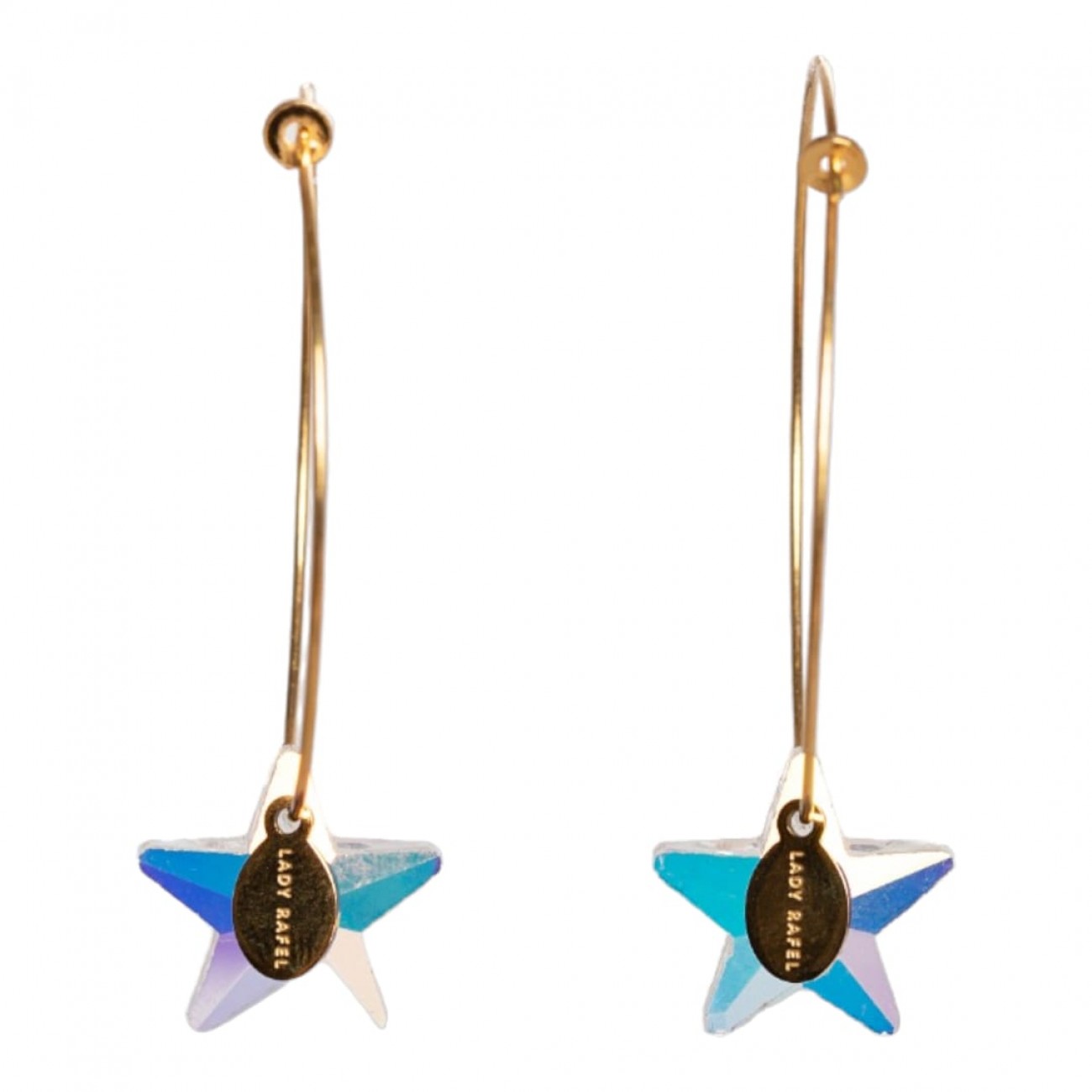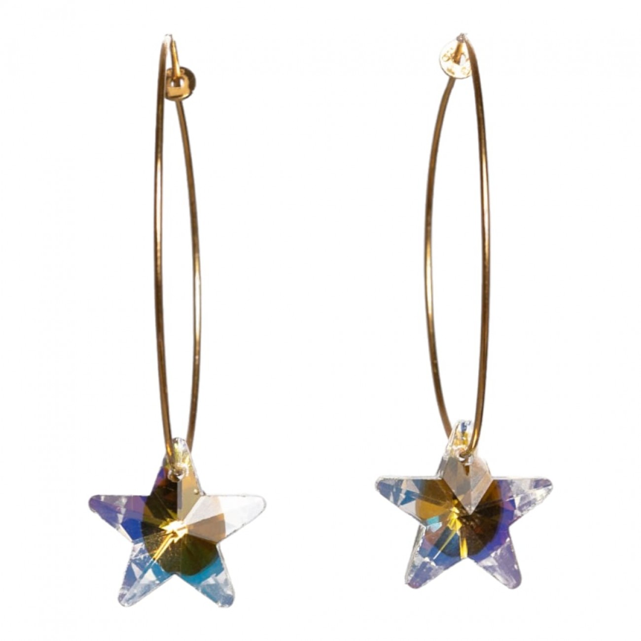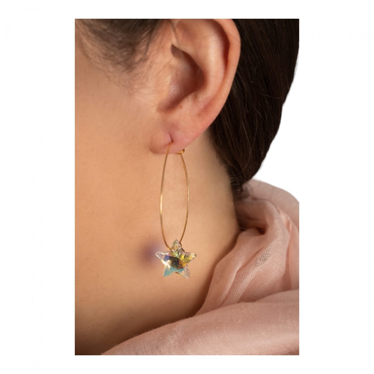 Orecchini a forma di cerchio in argento dorato con pendente in cristallo a forma di stella