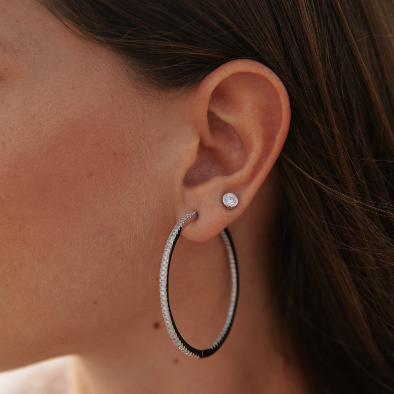 Orecchini cerchio strass argento