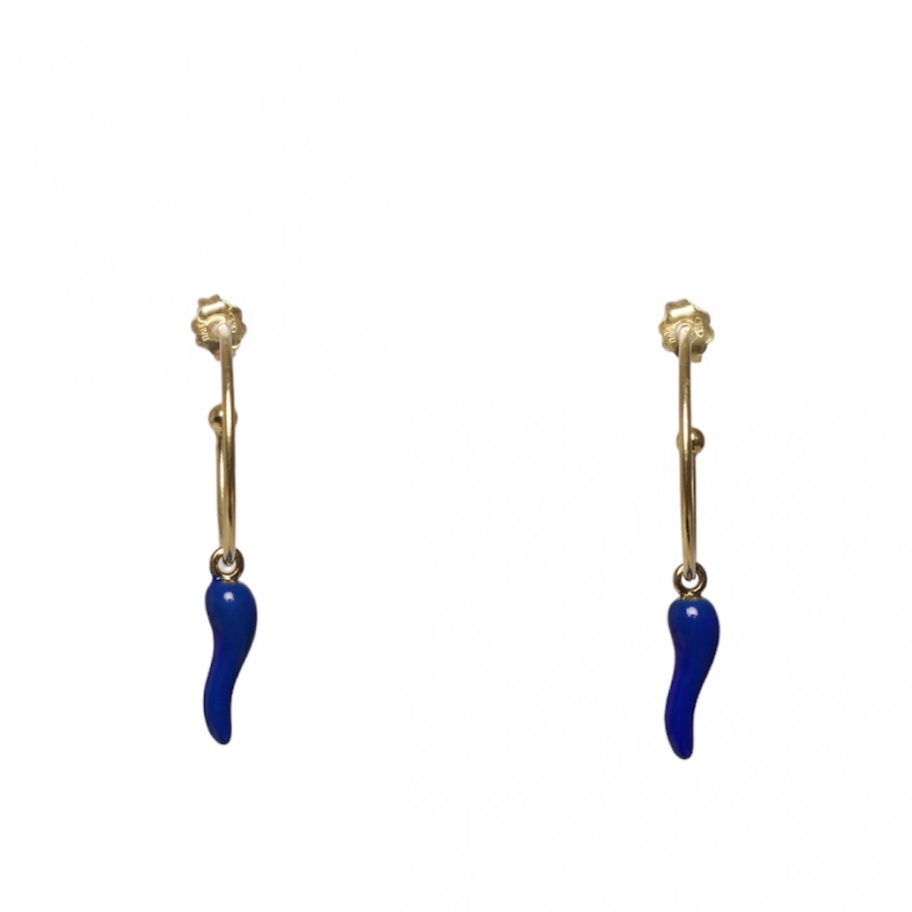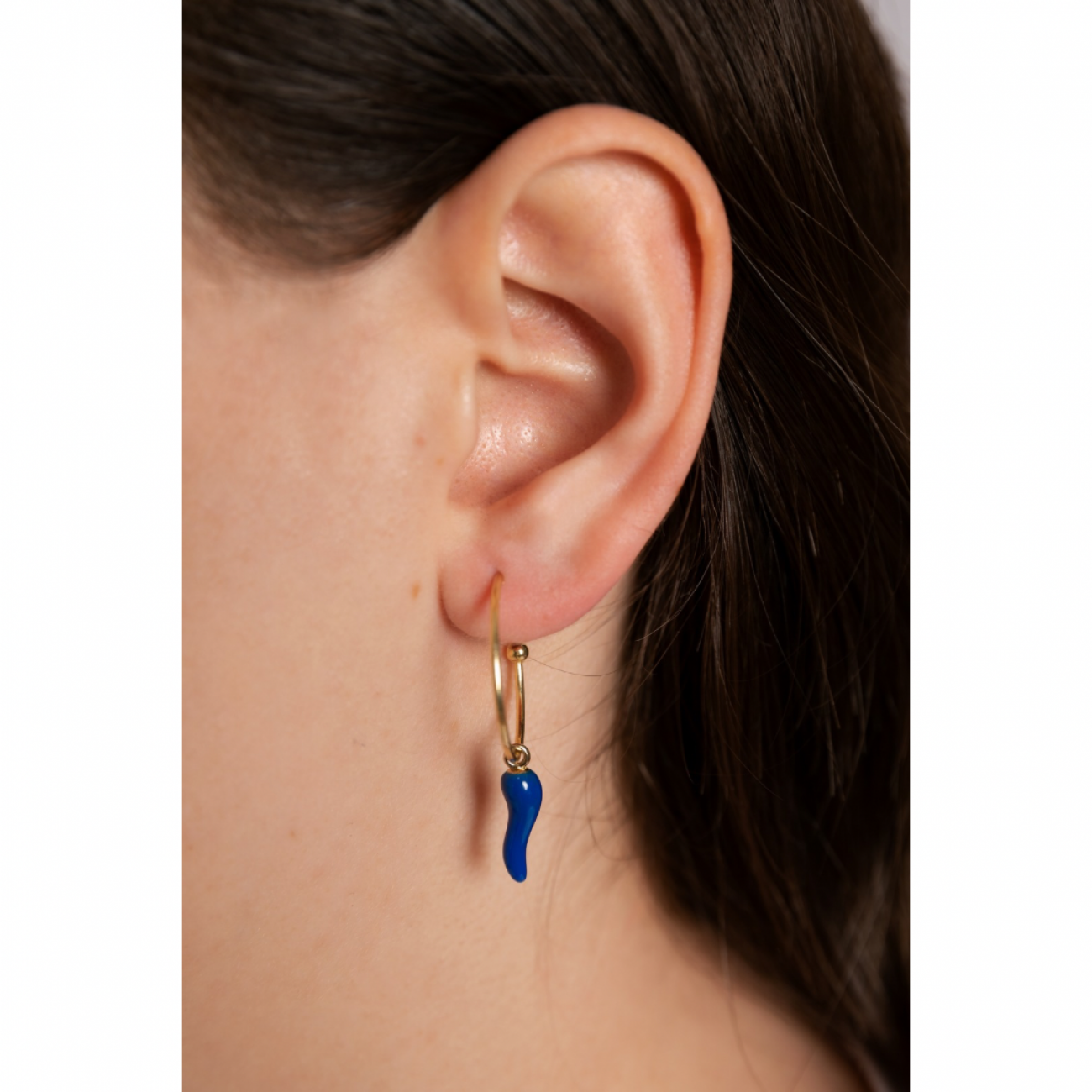 Orecchini a cerchietto aperto in argento dorato con pendente a forma di corno smaltato