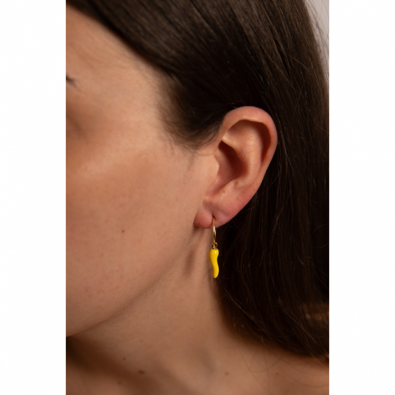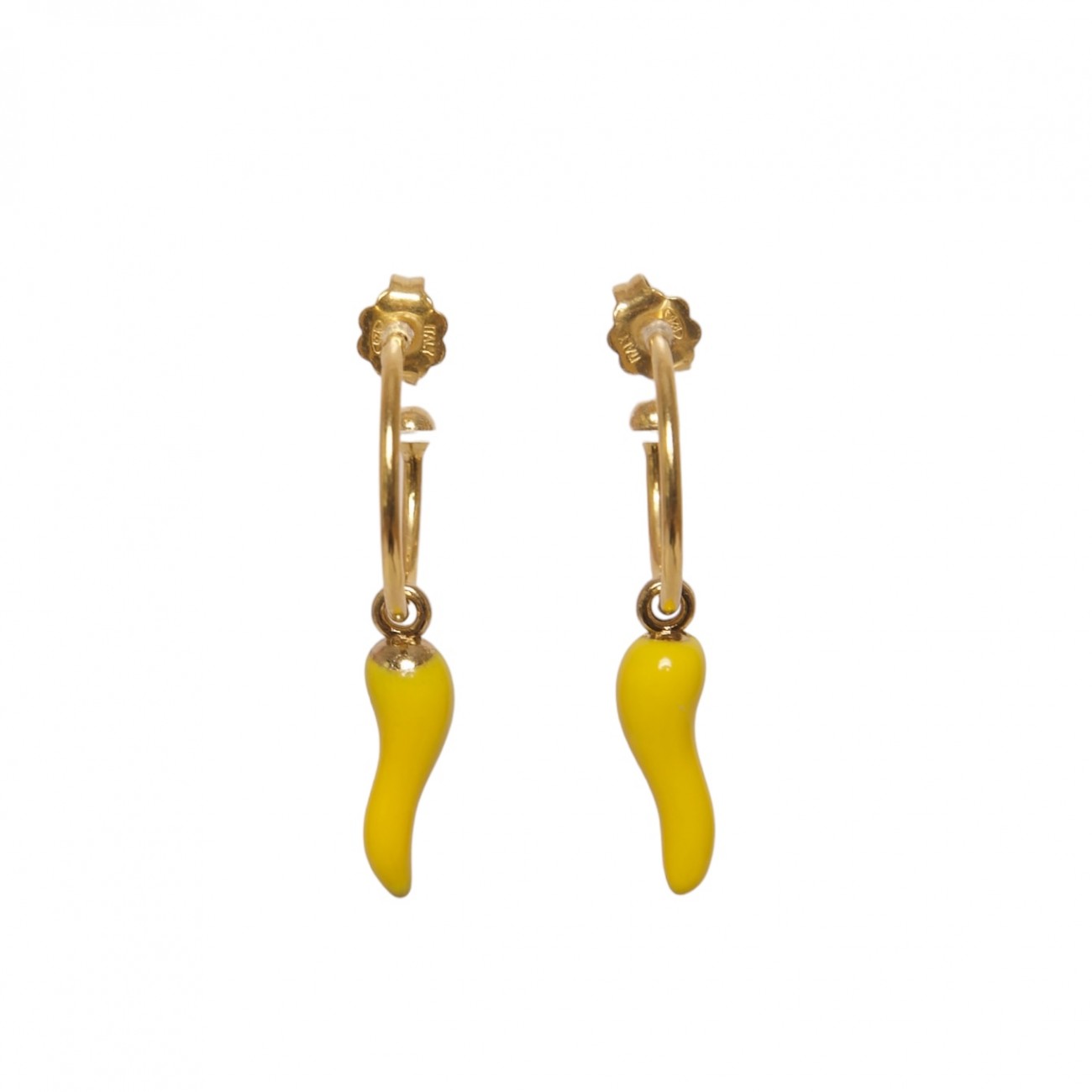 Orecchini a cerchietto aperto in argento dorato con pendente a forma di corno smaltato