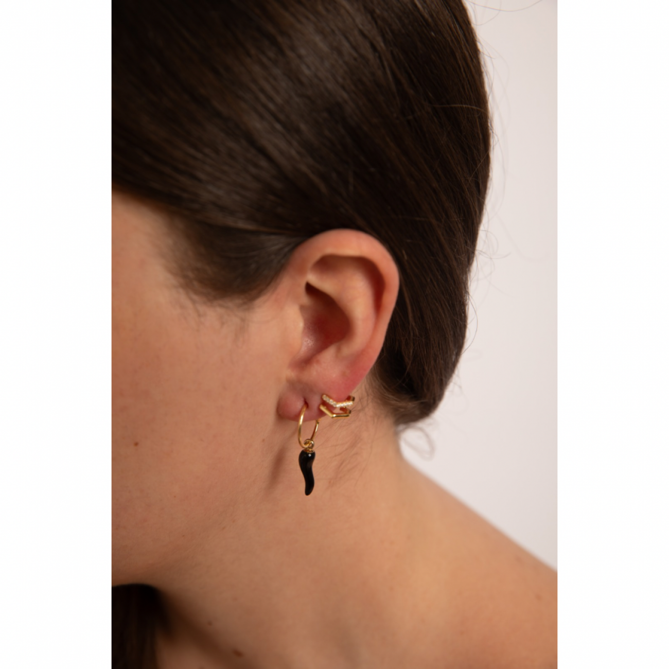 Orecchini corno nero cerchio piccolo