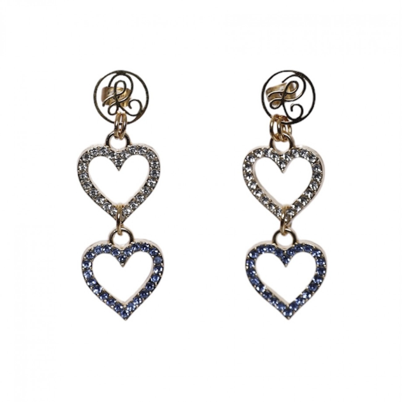 Orecchini con attacco Lady Rafel in acciaio inox e pendenti a forma di cuori e strass.
