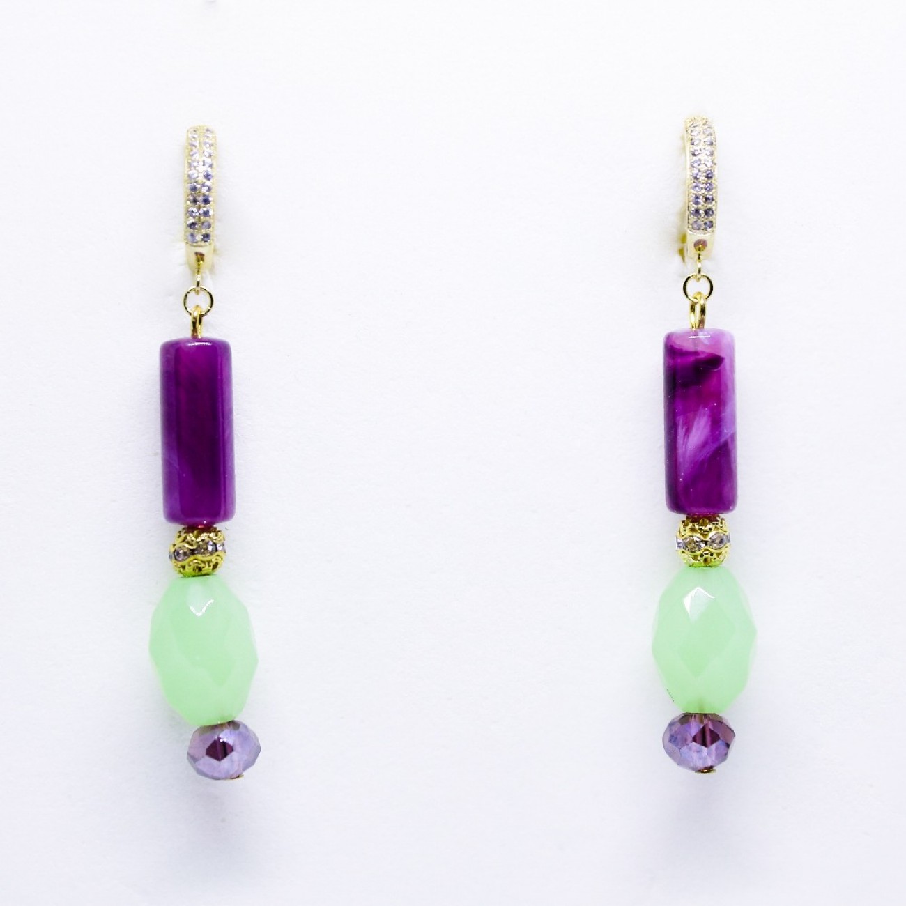orecchini pendenti con attacco placcato oro e strass, pietre dure e plastica