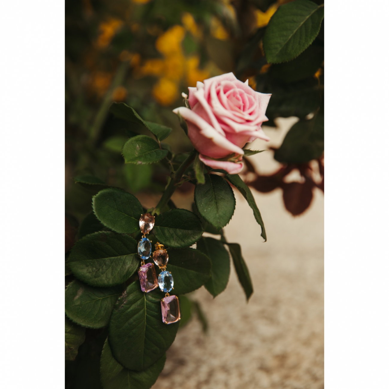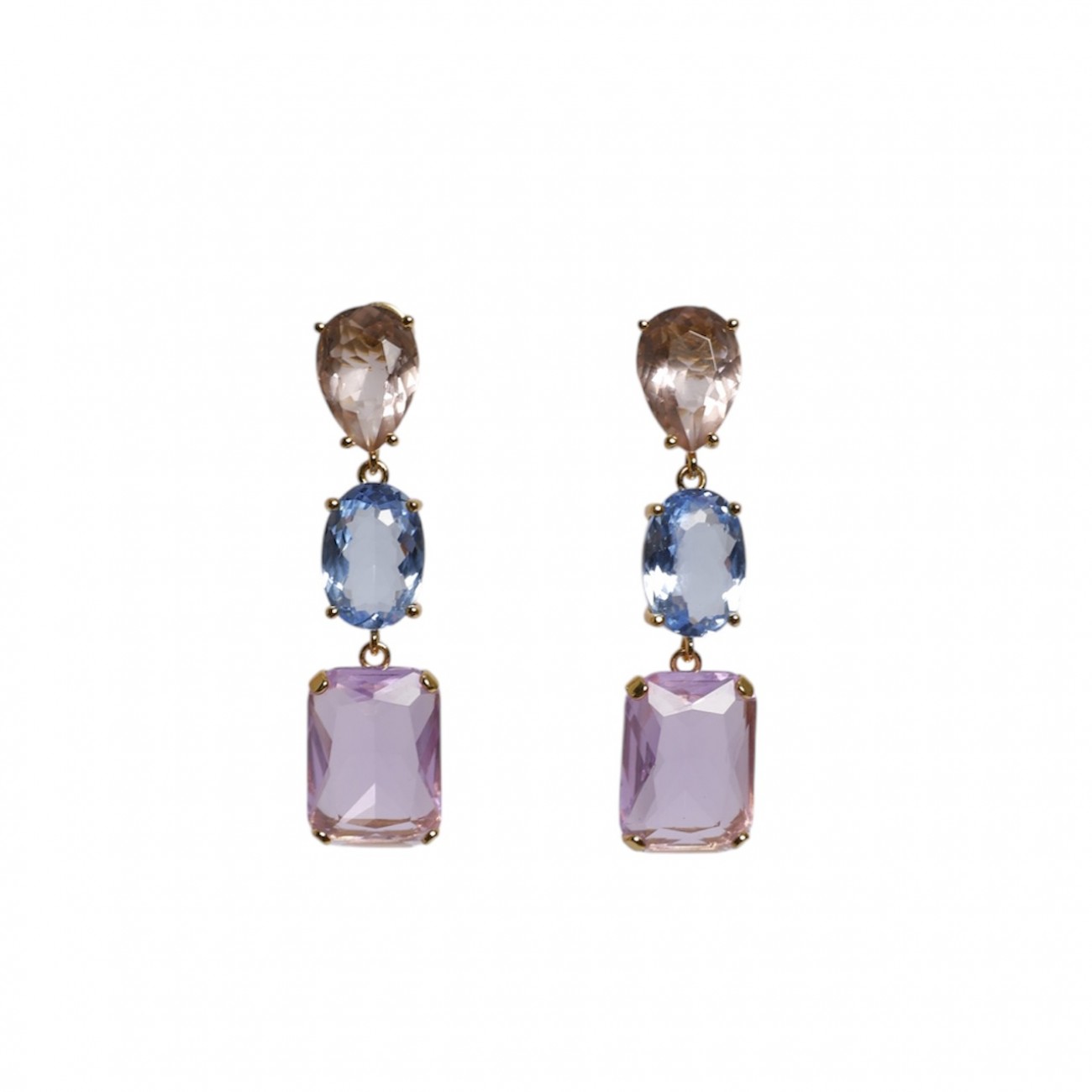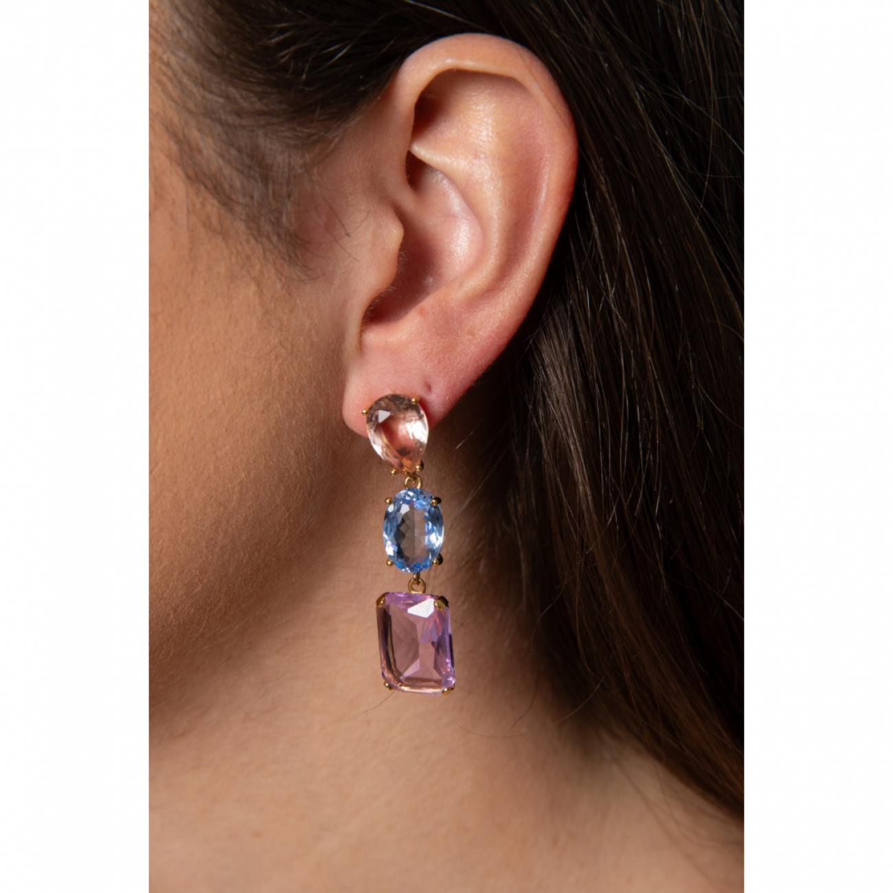 Orecchini pendenti in argento placcato oro con zirconi multicolor.