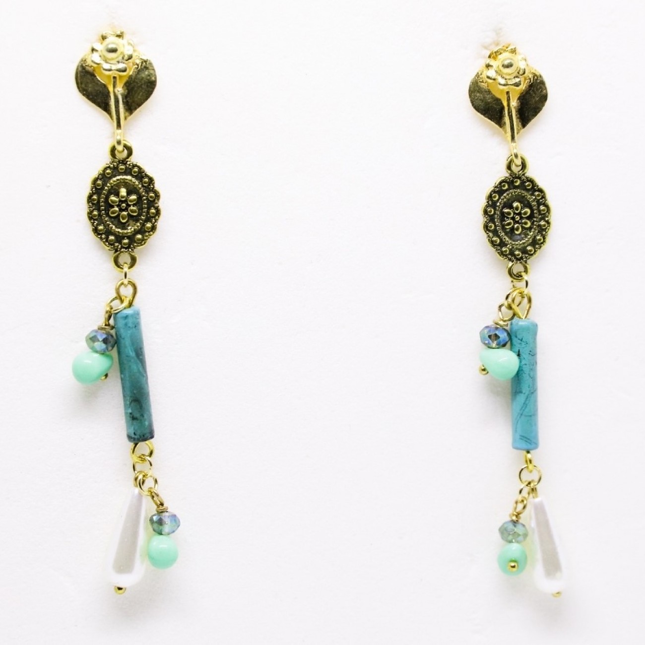Orecchini in resina, perline e perle sintetiche con attacco in argento placcato oro.