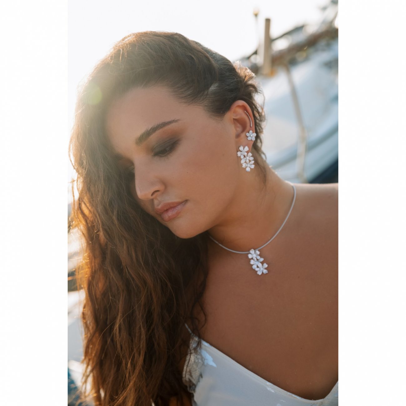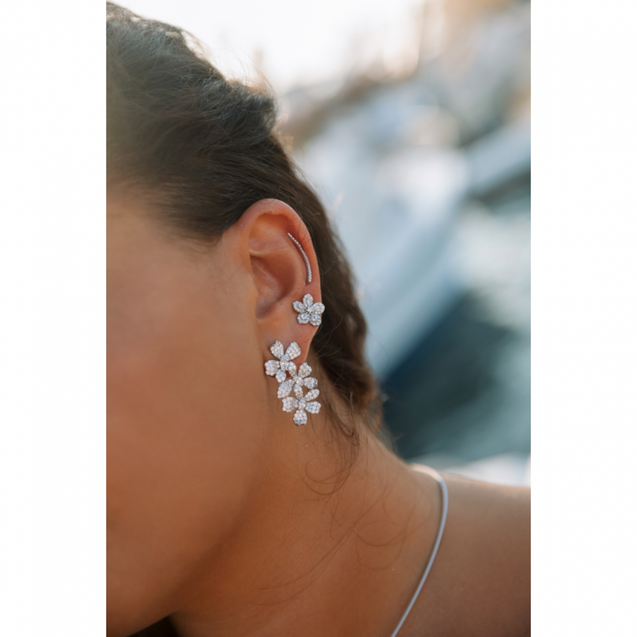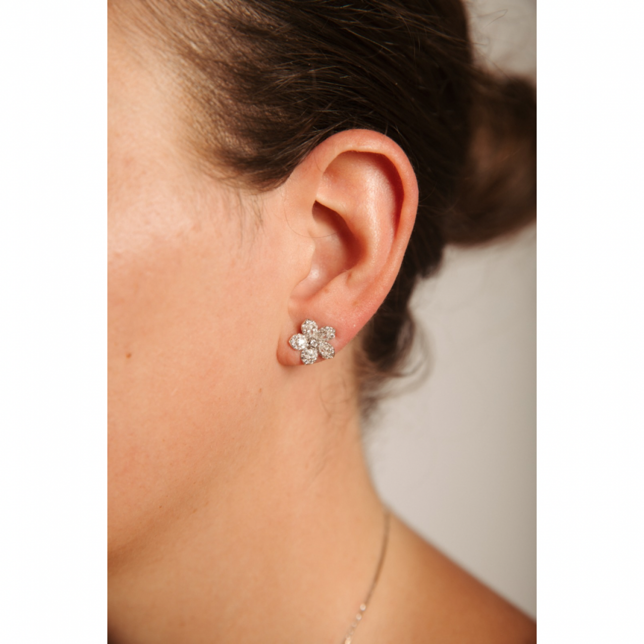 Orecchini in argento con zirconi incastonati a forma di fiore.