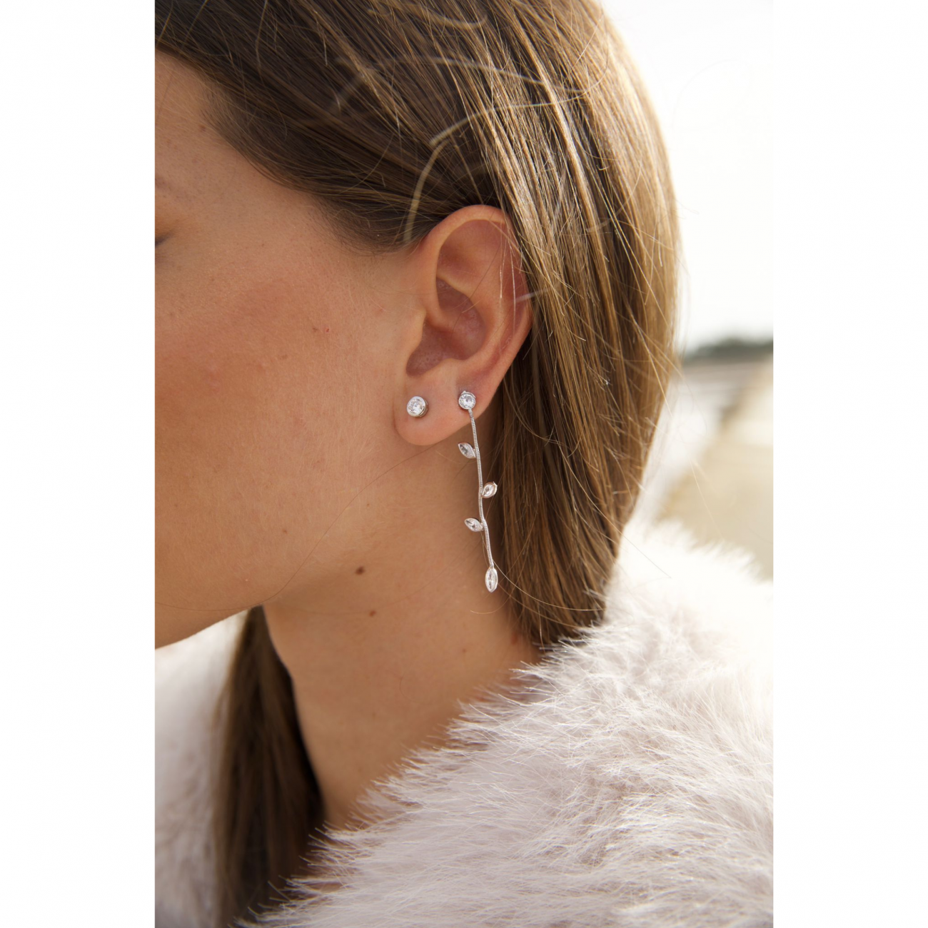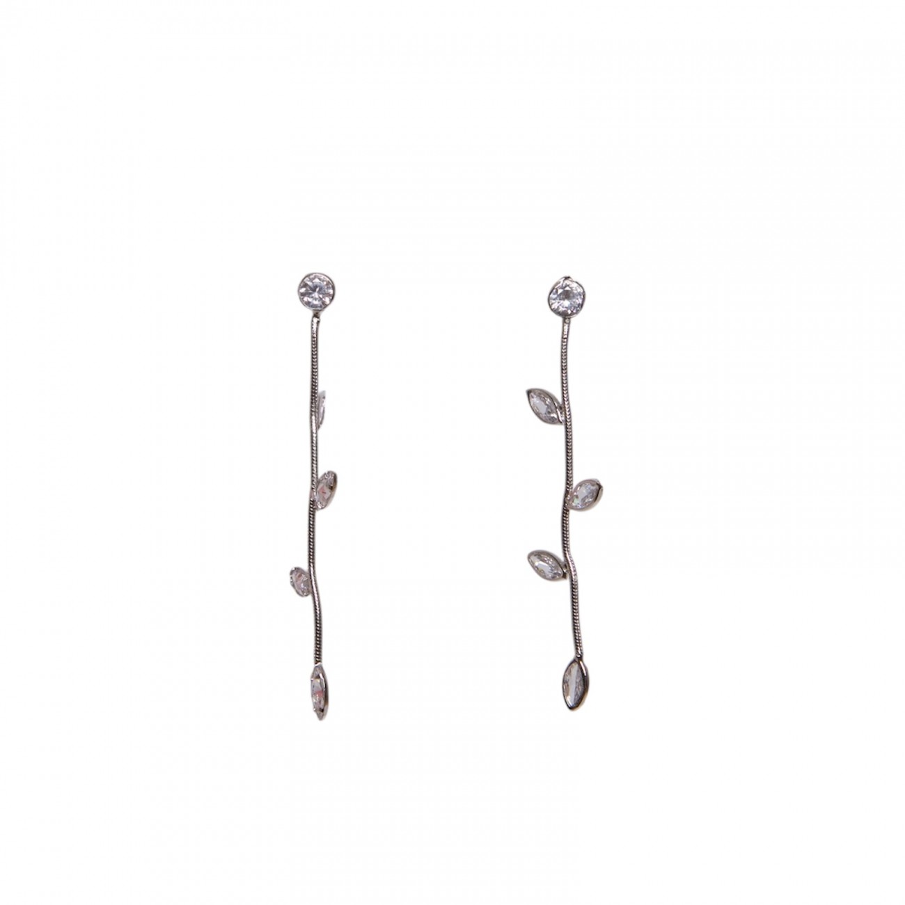 Orecchini in ottone argentato, decorati con pietre di zirconi a forma di foglioline.