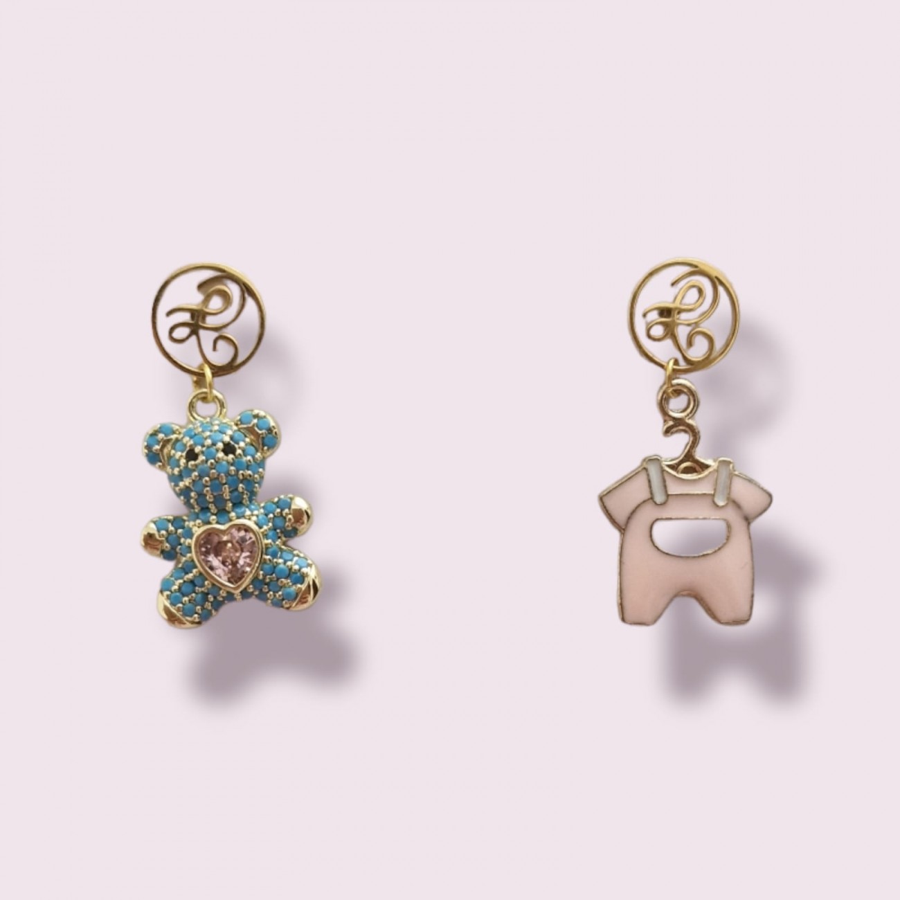 Orecchini con attacco in acciaio inox LadyRafel, pendente smaltato e pendente orsacchiotto con strass.