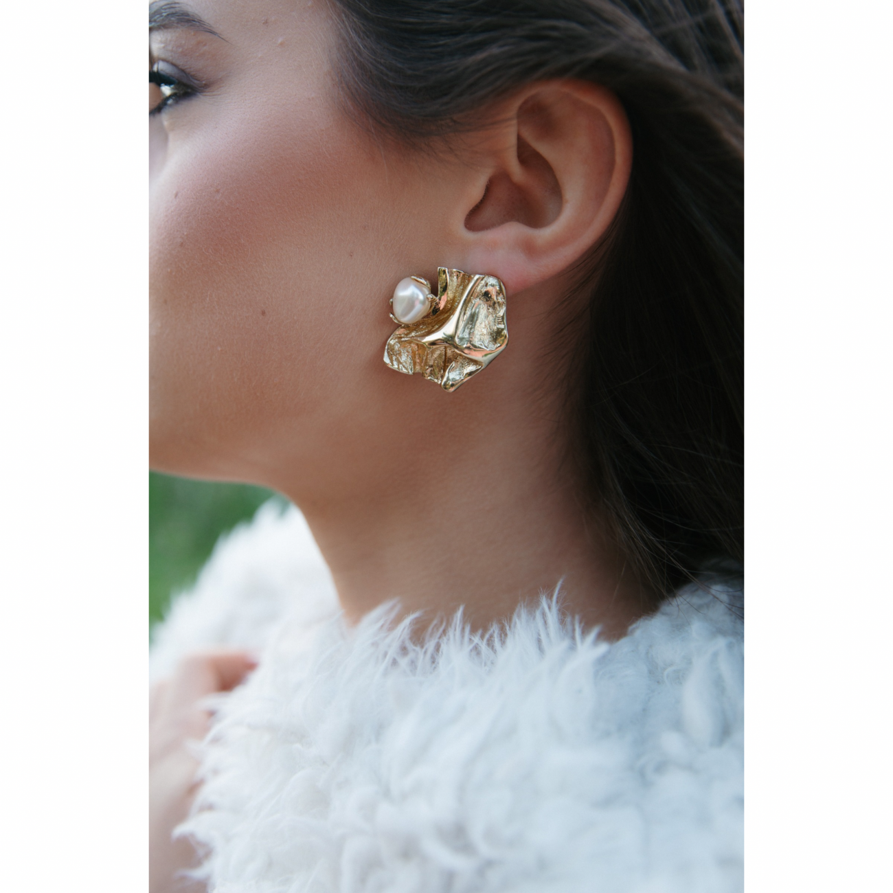 Orecchini a clip asimmetrici in ottone con perla sintetica laterale.