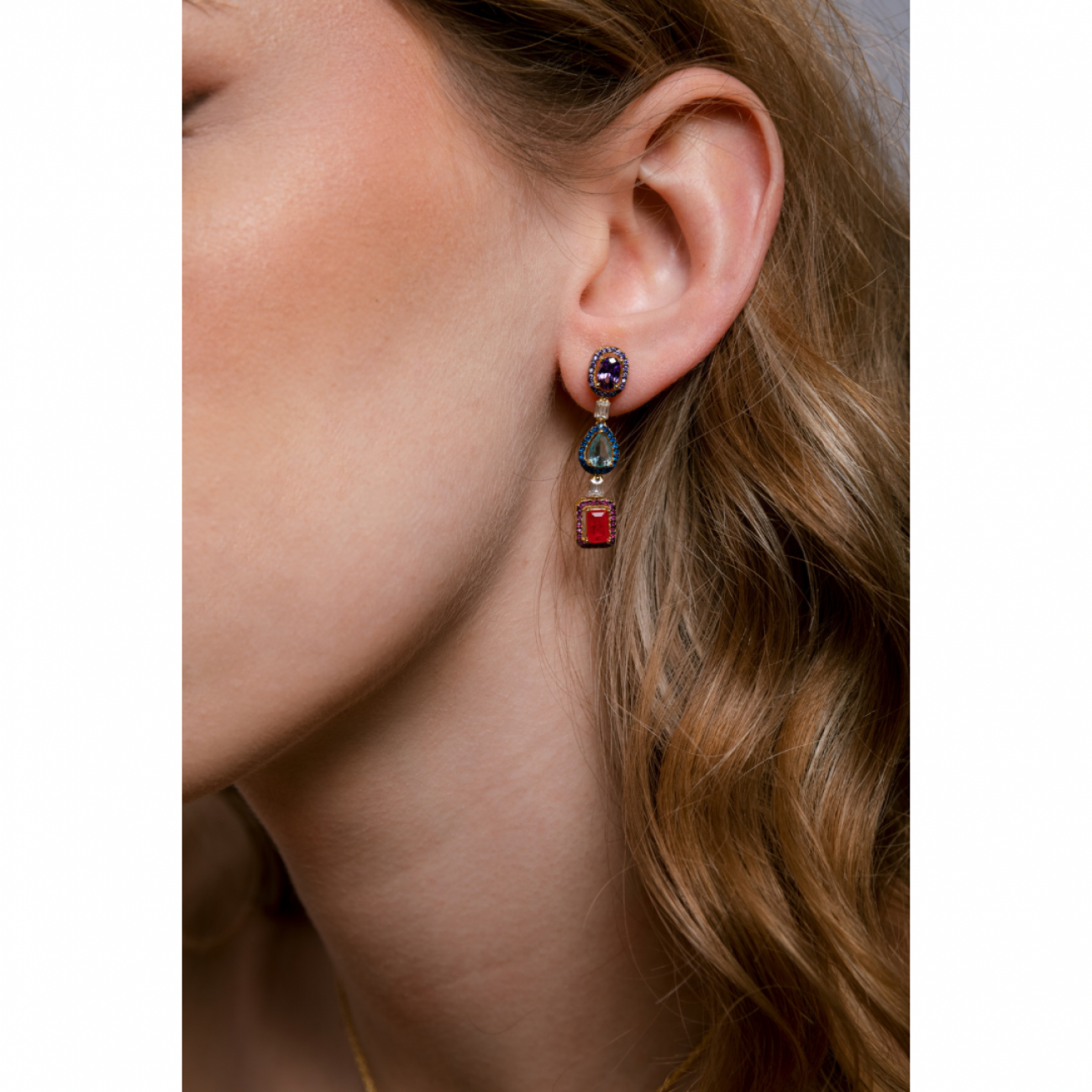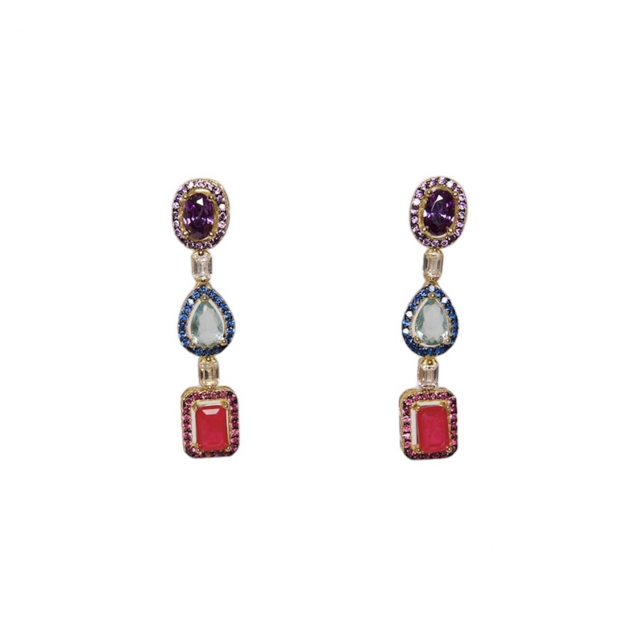 Orecchini pendenti in argento dorato con zirconi colorati e strass