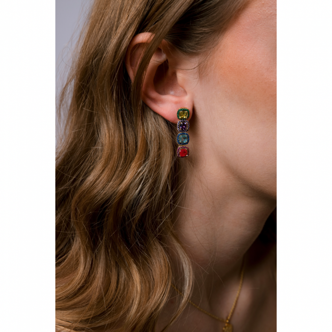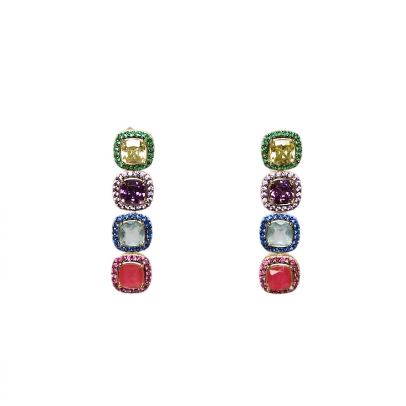 Orecchini pendenti in argento dorato con zirconi colorati e strass