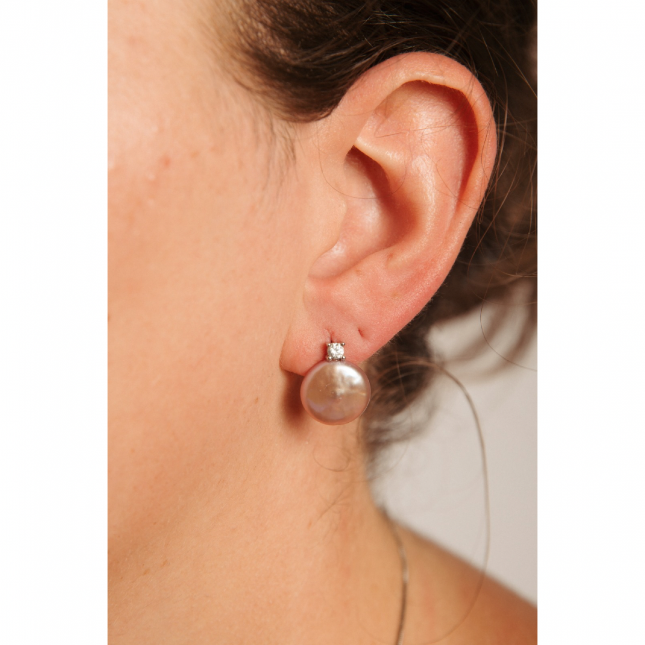 Orecchini in argento dorato con perla cangiante e brillantino sintetico.