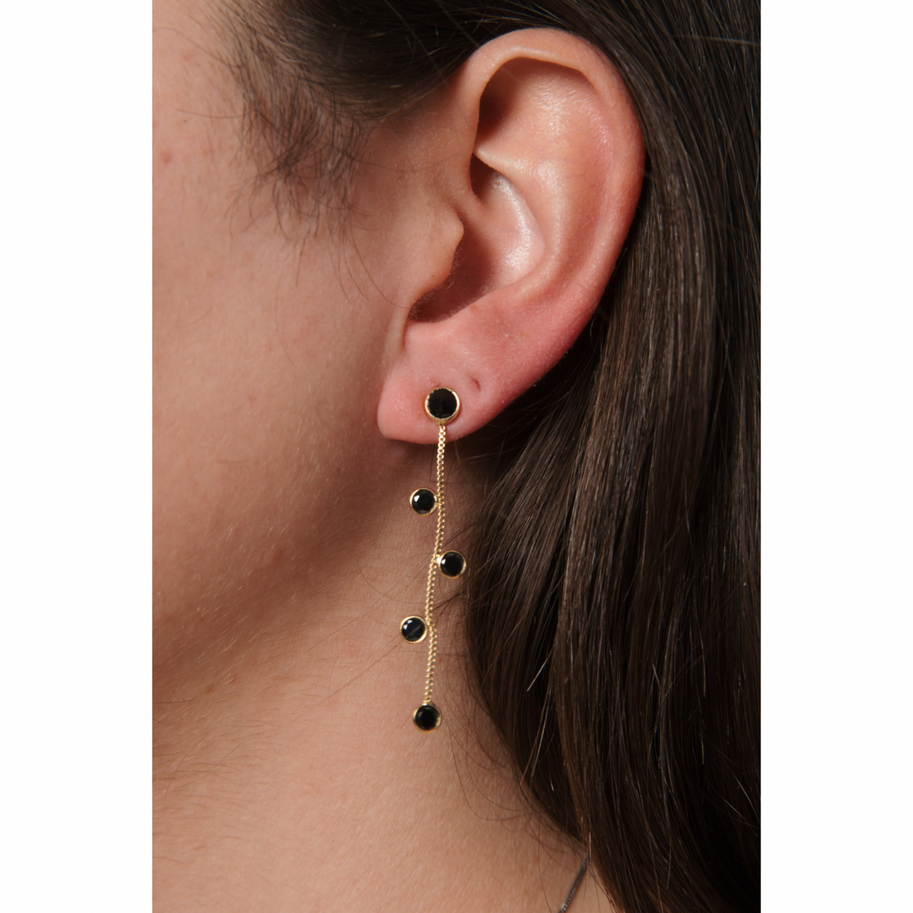 dettagli prodottoOrecchini pioggia di luce black and gold