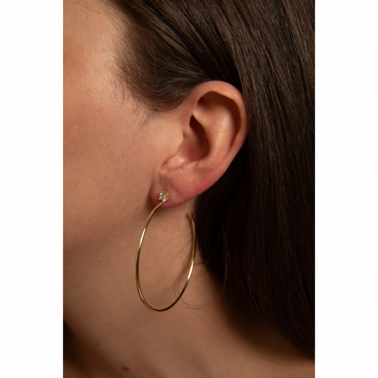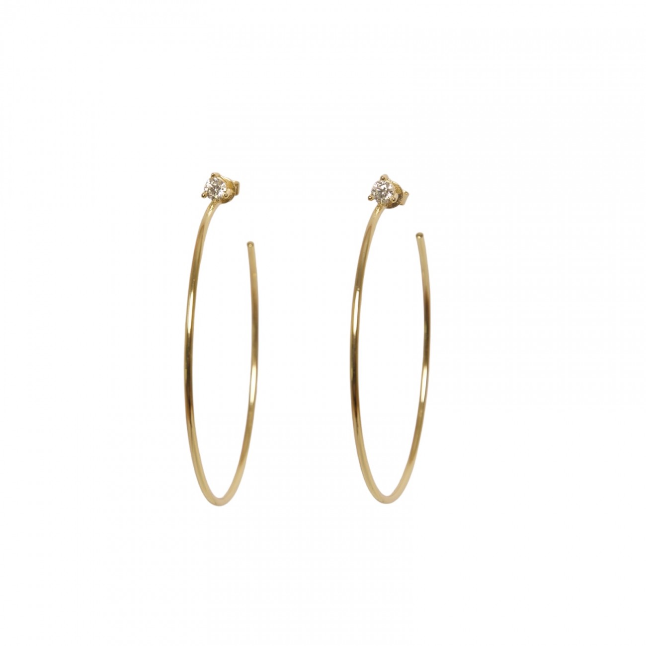 Orecchini a cerchio aperto in argento dorato con punto luce in moissanite