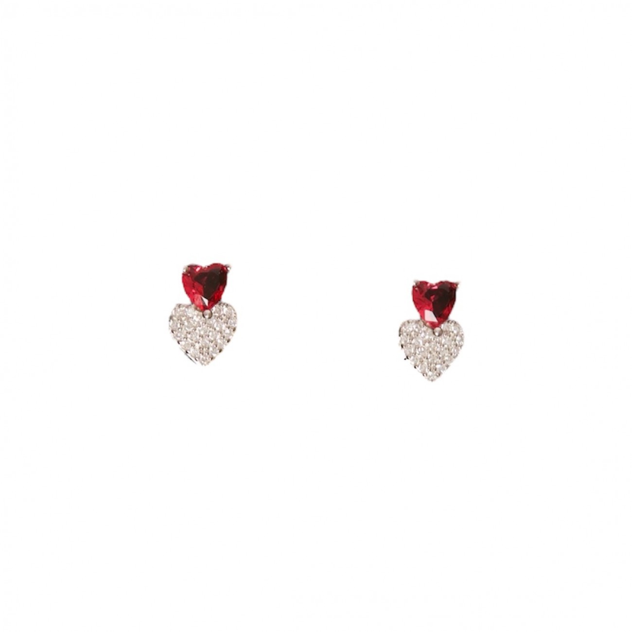 Orecchini in argento con cuori di zirconi sovrapposti.