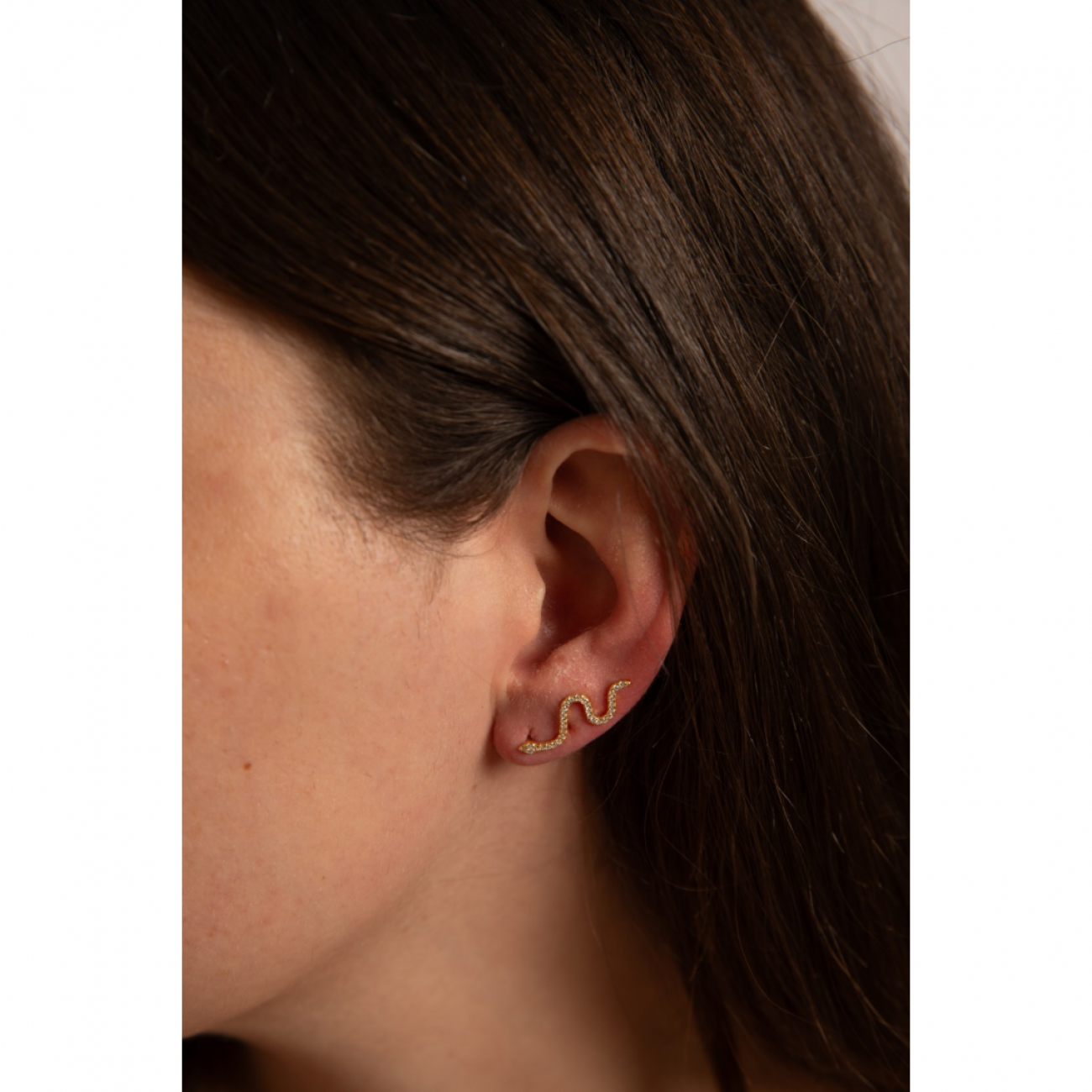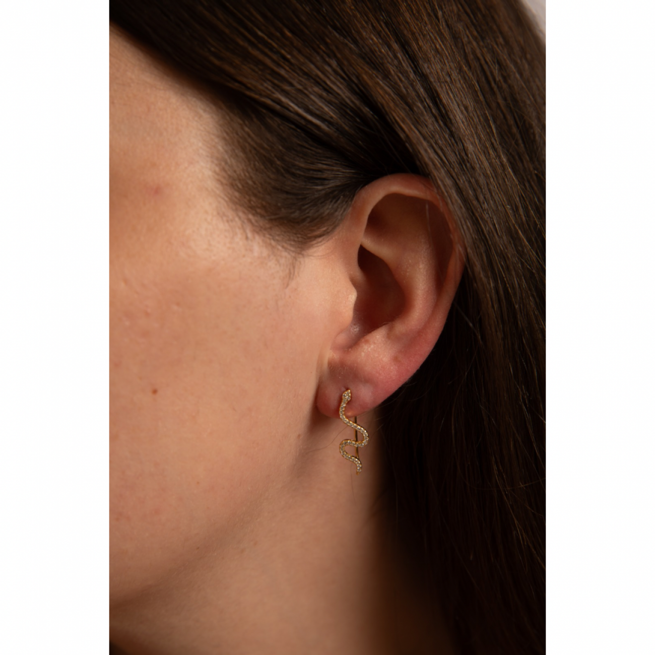 Orecchini in argento dorato a forma di serpente e strass, utilizzabili in 2 modi.