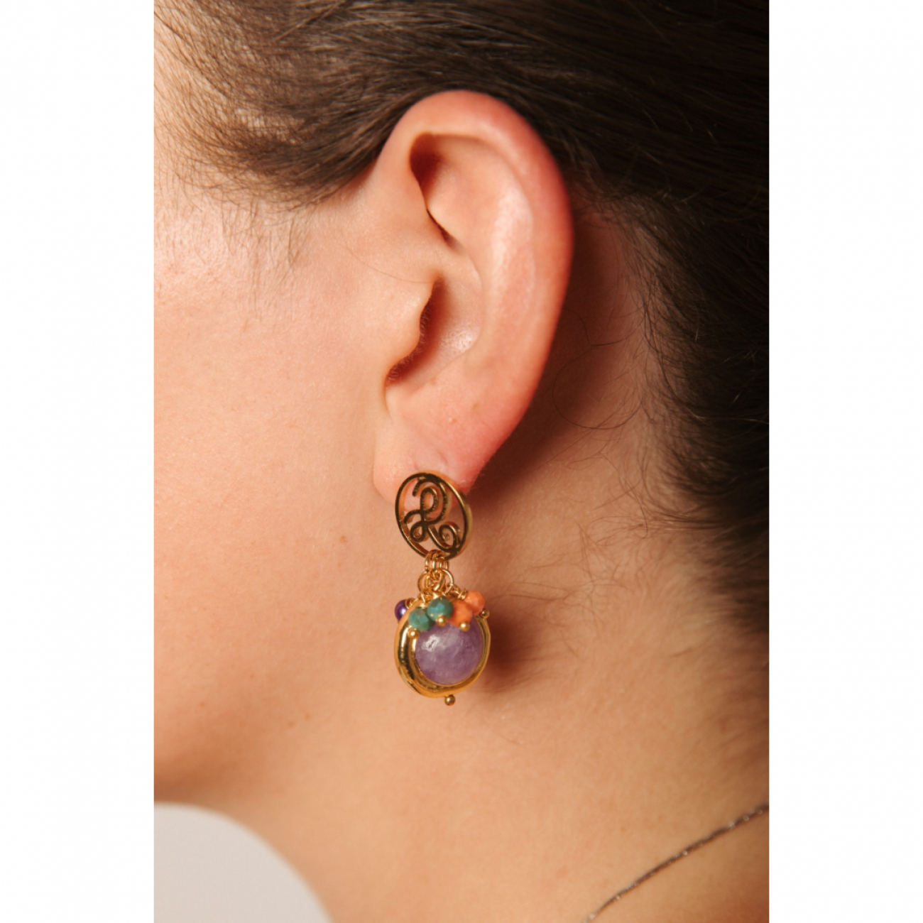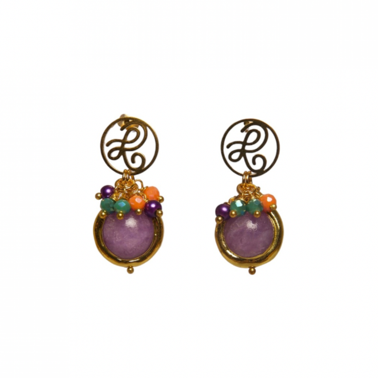 Orecchini con attacco Lady Rafel in acciaio inox e sfere pendenti in cristallo e resina.