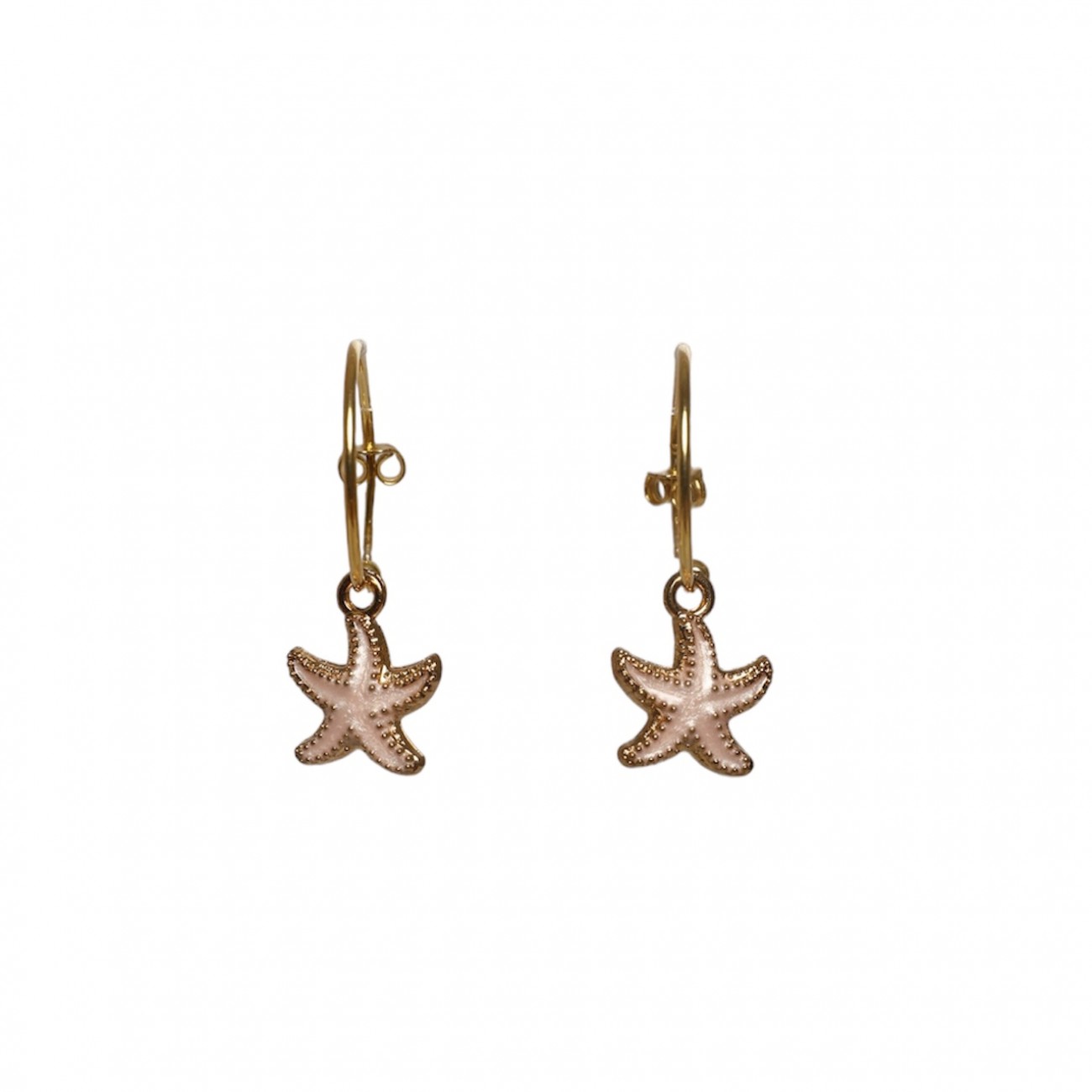 Orecchini a cerchietto in argento dorato con pendente a forma di stella marina smaltata.